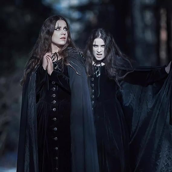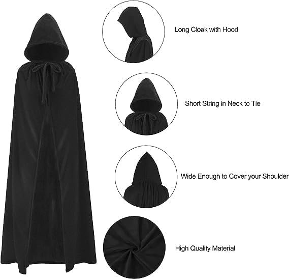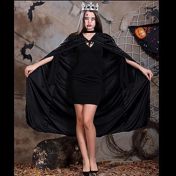 Halloween Nero con Cappuccio, Mantello da Vampiro di Halloween, Mantello con Cappuccio, Halloween Costume Donna, Mantello per Adulti, Mantello con Cappuccio per Cosplay e Feste