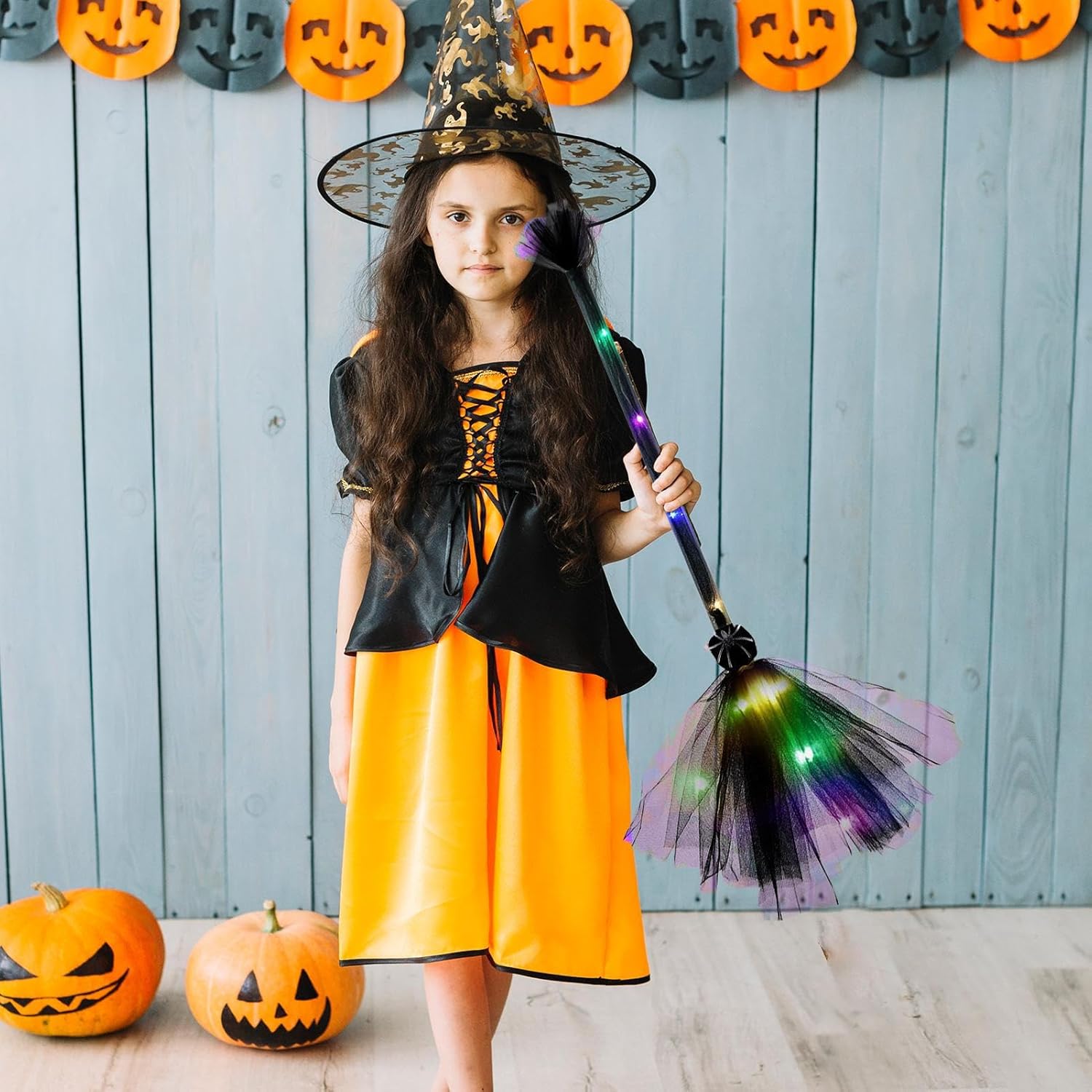 Scopa versatile: questa scopa è perfetta per la decorazione di interni ed esterni, ideale per temi e feste di Halloween, utilizzata come materiale per feste per aumentare la gioia delle attività, integra in modo naturale le opzioni di decorazione dell'ingresso e aggiunge fascino con semplicità e versatilità per varie occasioni festive e non. Design accattivante: la scopa presenta un bagliore continuo con illuminazione a LED multicolore, che garantisce visibilità al buio e diventa il centro dell'attenzione durante gli eventi notturni, rendendo l'atmosfera festosa spontanea e mettendo in risalto piacevolmente gli accessori per giochi di ruolo: migliora l'immersione nel gioco di ruolo con un design realistico, si adatta perfettamente alle feste a tema e dona un'allegra atmosfera agli eventi in costume. Ideale per gli appassionati di giochi di ruolo e le feste. Giochi di società interattivi: ispira giochi dinamici attraverso il concetto di competizione volante, crea interazioni vivaci e aumenta il divertimento di ogni incontro con attività coinvolgenti per tutti gli ospiti Esperienza di gioco ergonomica: progettata con una comoda impugnatura e una rete leggera, questa scopa facilita il funzionamento con una sola mano, mantenendo i bambini impegnati nel gioco senza provare disagio o affaticamento