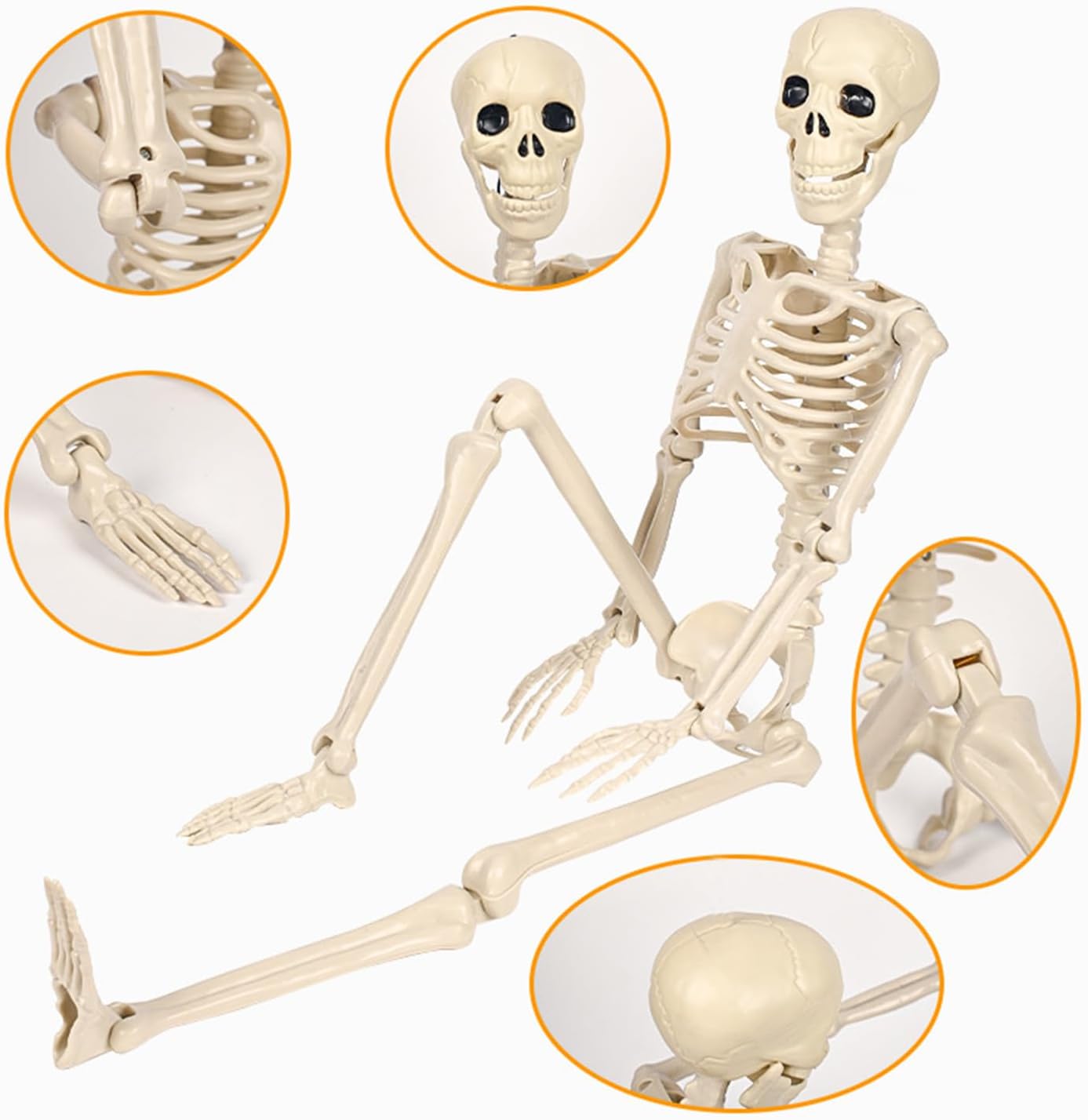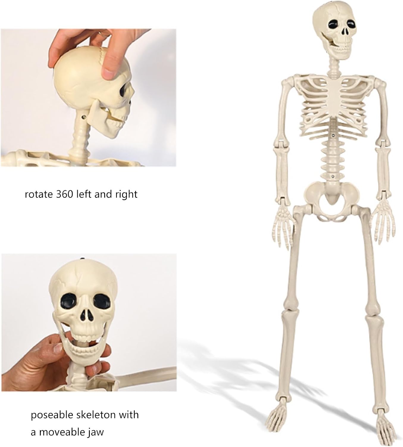 Realizzato in plastica, questo scheletro per tutto il corpo è posizionabile, permettendoti di piegarlo in varie posizioni ossessionanti per la tua celebrazione Adatto per educatori, artisti e studenti di medicina, questo scheletro serve come modello anatomico accurato per l'apprendimento o come oggetto di scena agghiacciante per esposizioni a tema Con le sue parti facili da montare e l'opzione di sospensione, questo scheletro realistico è essenziale per creare aria inquietante in questa stagione di Halloween Migliora la tua decorazione di Halloween con lo scheletro realistico, dotato di giunti mobili design Trasforma qualsiasi spazio in una scena agghiacciante; adatto per case infestanti, feste di Halloween o ambienti educativi come studi d'arte