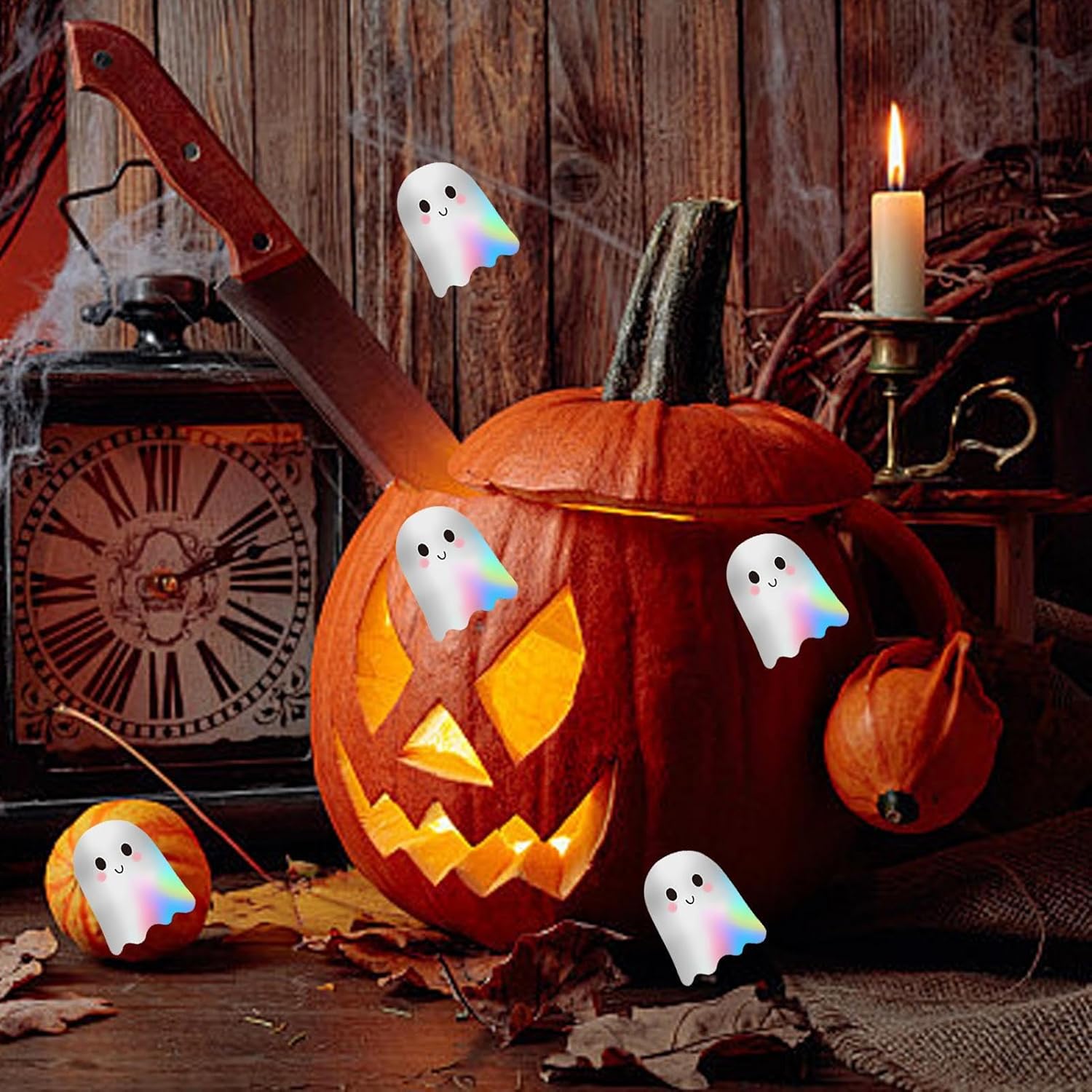 Fun Ghost Designs: These Halloween stickers feature spooky yet cute ghost patterns, perfect for decorating rooms, doors, bottles, and , adding a playful holiday vibe for kids and families Holographic Shine Effect: Each sticker has a holographic finish that reflects light beautifully, making them eye-catching decorations for crafts, party favors, or treat bags Easy to Use & Remove: These adhesive stickers stick firmly to most surfaces yet can be removed without leaving , ideal for seasonal décor on walls, notebooks, and gift wraps Versatile Holiday Décor: Great for Halloween parties, classroom activities, scrapbooking, or craft projects, these stickers are suitable for kids, teachers, and craft enthusiasts Perfect Party Favor: A fun and option for treat bags, goody boxes, or party games, these Halloween stickers bring joy and creativity to kids during the spooky season