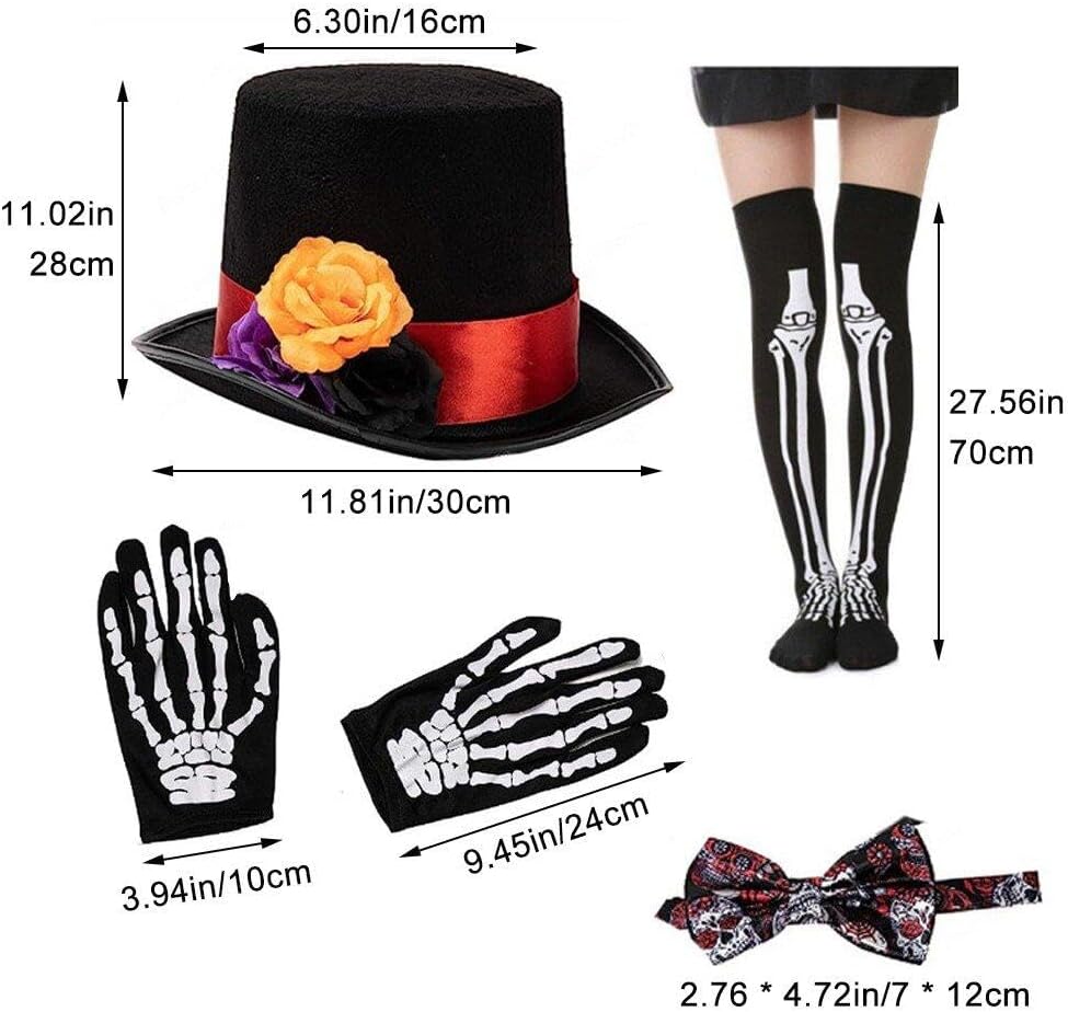 Gli oggetti pieni di elementi di Halloween aggiungeranno sicuramente un tocco di colore al tema del tuo festival. Riceverai 1 cappello, 1 paio di calzini lunghi al ginocchio e 1 paio di guanti e 1 cravatta, sufficienti per soddisfare le tue esigenze quotidiane di decorazione e costume. Possono essere applicati ad Halloween, anniversario della morte, cosplay, feste in maschera, feste in maschera o accessori per la festa di Natale. I nostri guanti scheletrici possono essere ampiamente applicati a vari cappelli, mantelle, abiti, camicie, gonne, giacche, abiti, scarpe e molti altri costumi. Elementi divertenti e alla moda mostrano il tuo corpo perfetto e aumentano la tua sicurezza.