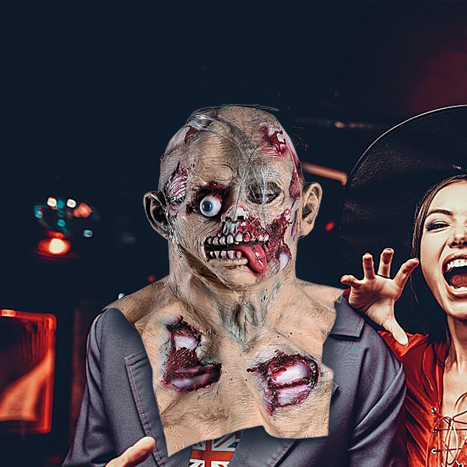 Descrizione prodotto Halloween Zombie Masque | Masque in raccapricciante in lattice | Maschera piena di testa, copricapo realistico, oggetti di cosplay novità per adulti, decorazione orribile Aggiorna il tuo costume di Halloween con il nostro Masque di Zombie Head! Realizzati in lattice naturale, i punti di sangue sulla bocca rendono le persone inquietanti. Il design a testa piena neutra si adatta alla maggior parte delle teste degli adulti, rendendoti il punto focale più accattivante e terrificante ad Halloween. Aggiungi un'atmosfera terrificante e divertente ai tuoi vestiti con questa maschera. Specifica: Materiale: lattice Dimensione del prodotto: circa 56x25 cm/22.05x9.84 pollici Lista imballaggio: Halloween Zombie Masque*1pcs Nota: A causa delle diverse impostazioni di illuminazione e schermo, il colore 'oggetto può essere leggermente diverso dall'immagine. A causa delle diverse misurazioni manuali, consentire una differenza di 1-2 cm di dimensioni. Avviso di sicurezza Non applicabile