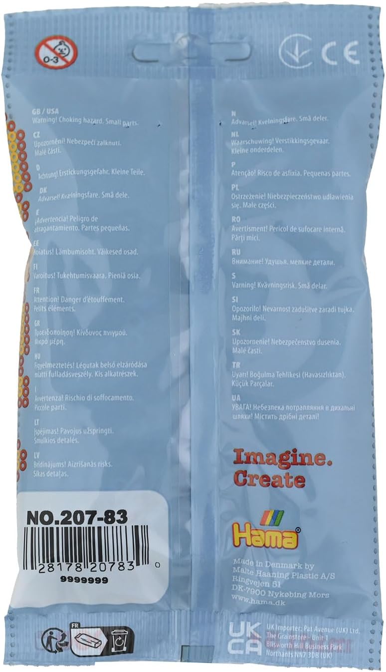 Perline stirabili Midi con diametro di 5,0 mm e adatte ai bambini dai 5 anni in su Istruzioni per la stiratura in 3 fasi: posizionare le perline sulla piastra; coprire il motivo con carta da stiro e fondere le perline con il ferro da stiro. (Nota: la stiratura deve essere effettuata da un adulto); rimuovere il motivo di perline dalla placca Non adatte a bambini di età inferiore ai 3 anni; pericolo di soffocamento a causa delle piccole parti che possono essere ingerite
