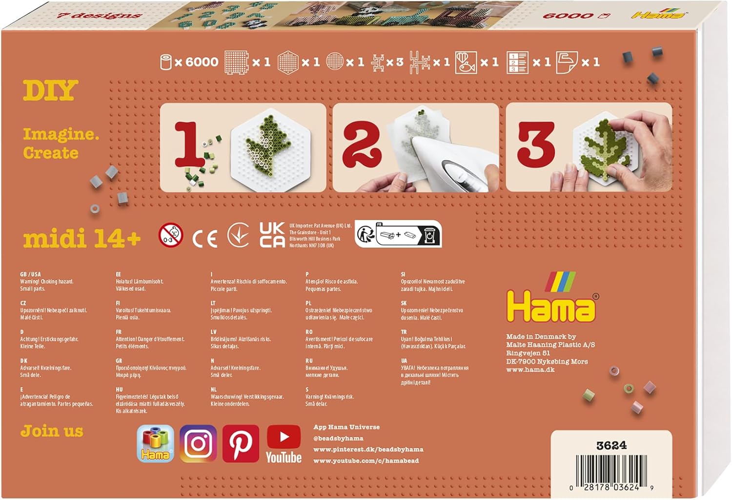 Set regalo con circa 6.000 perline colorate Hama in diversi colori, motivo trenino di compleanno 3D, tre portapenne, 4 connettori Hama e carta da stiro Contiene perle di dimensioni medie di 5 mm di diametro, queste sono consigliate per bambini dai 14 anni in su, la stiratura dovrebbe essere utilizzata da un adulto Le perline sono versatili e sono adatte per la creazione di immagini pixel, piccole figure o per cucire e infilare Il fai da te con perline stimola la concentrazione, le abilità motorie e la creatività in modo giocoso Le perle e gli accessori originali Hama sono realizzati in plastica sicura (privi di plastificanti come BPA e ftalati)