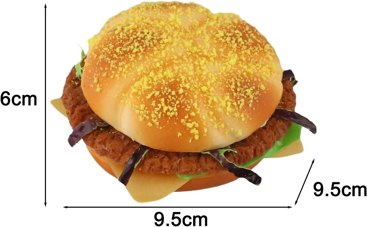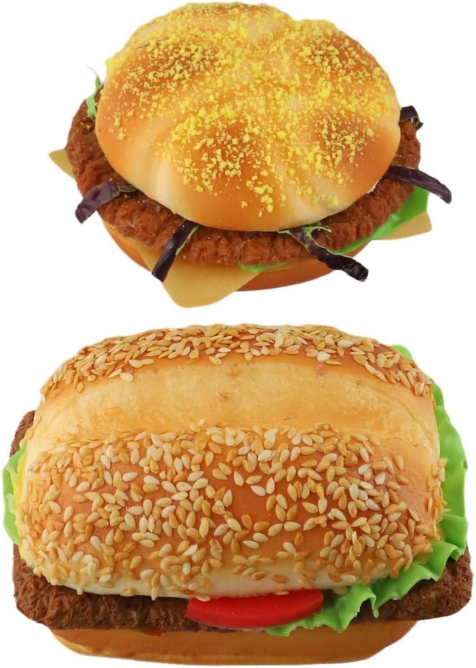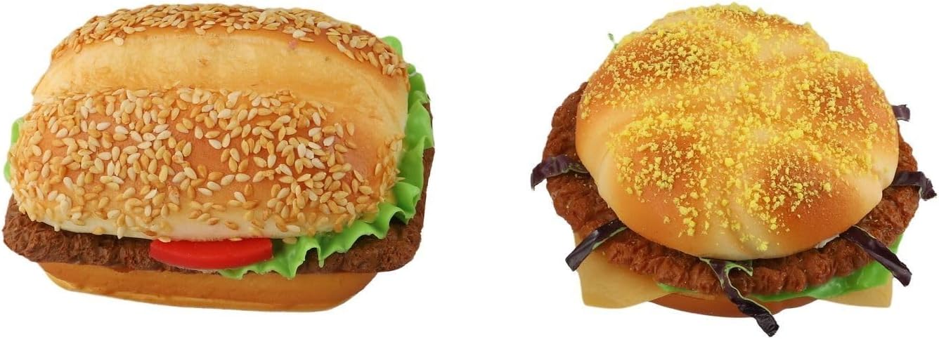 Vero hamburger, che lo rende un affascinante centrotavola per il bancone del tuo negozio o per espositori decorativi. Aspetto realistico. Questo panino per hamburger in poliuretano artificiale è realizzato per essere simile a un hamburger in plastica PU artificiale è progettato per durare a lungo, fornendo un aspetto attraente ed è stabile e coerente nel tempo. Oggetto decorativo per abbellire la vetrina o la fotografia. Un stravagante oggetto artificiale per servire. Questo sostegno aggiunge un tocco di manutenzione minima a qualsiasi disposizione decorativa in contrasto con la reale sostenibilità. Questo hamburger simulato richiede poca manutenzione, basta pulirlo per mantenerlo fresco e attraente Design facile da trasportare: il design leggero consente una facile produzione e riposizionamento. La costruzione può essere riorganizzata per esigenze di presentazione o progetti creativi