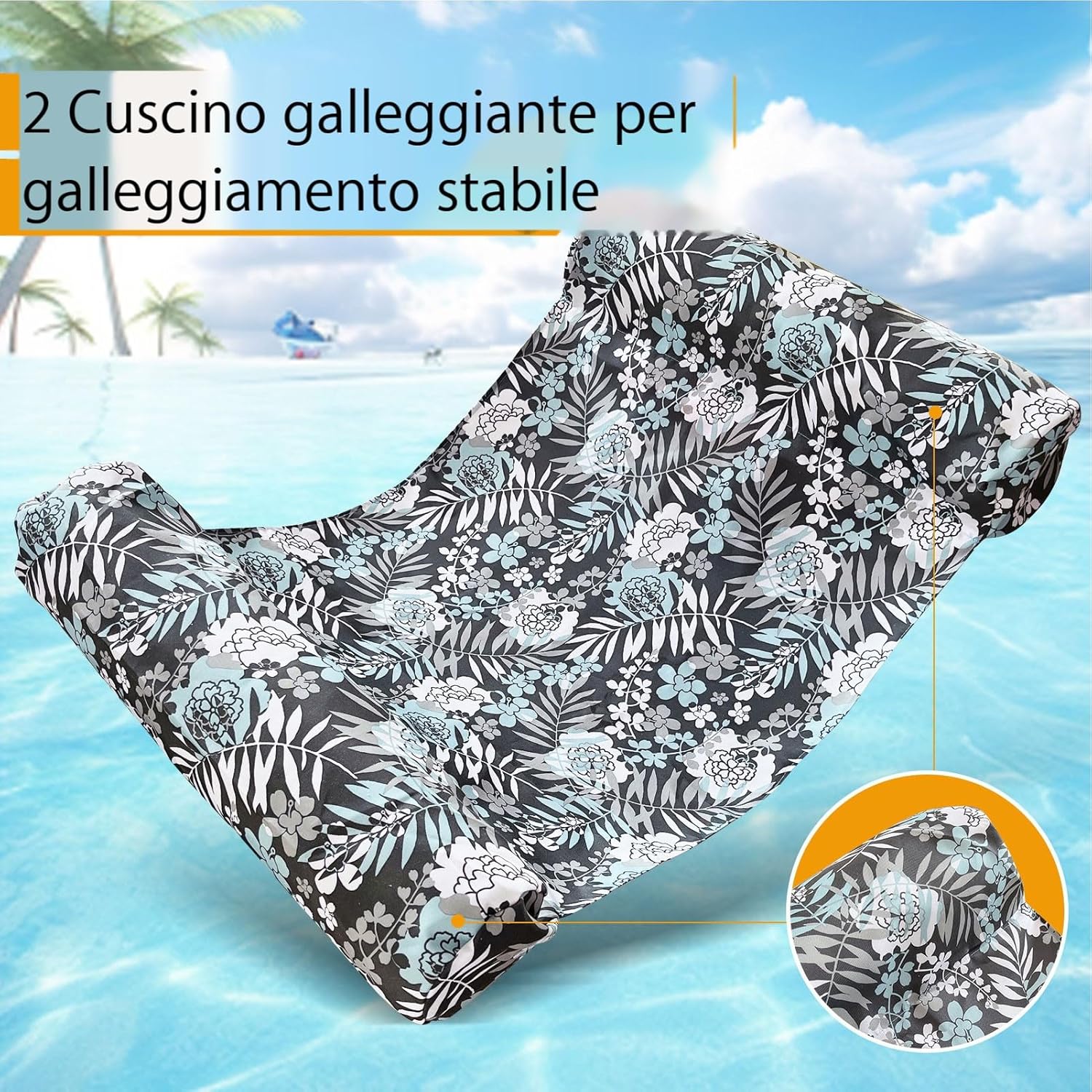 Trovolo d'acqua: mentre si sposta sull'acqua, il design avanzato in PVC avanzato di piscina e tessuto morbido assicurano un'esperienza confortevole e resistente, rendendola una scelta perfetta SCELTA TEMPA: Per la tua migliore esperienza di nuoto, scegli la nostra amaca galleggiante in piscina che contiene 250 libbre, offrendo un comfort spazioso per gli adulti più grandi per galleggiare senza sforzo e rilassarsi con un clima estivo caldo Conveniente esperienza in piscina: con solo una pompa (non inclusa), gonfiare questa gomma a galleggiante è un gioco da ragazzi! Il suo design portatile e pieghevole consente un facile trasporto e conservazione, rendendolo la scelta perfetta per il rilassamento. Stampe vivide: concediti un rilassamento senza pari con la nostra amaca galleggiante, completata da splendide stampe per ulteriore eccitazione e vitalità in acqua Versatile negli usi: migliora il tuo rilassamento con la nostra amaca float piscina, progettata per trasformarsi senza soluzione di continuità da una sella a una sedia a vasca o salotto. per qualsiasi avventura all'aperto, è il compagno più versatile per la piscina