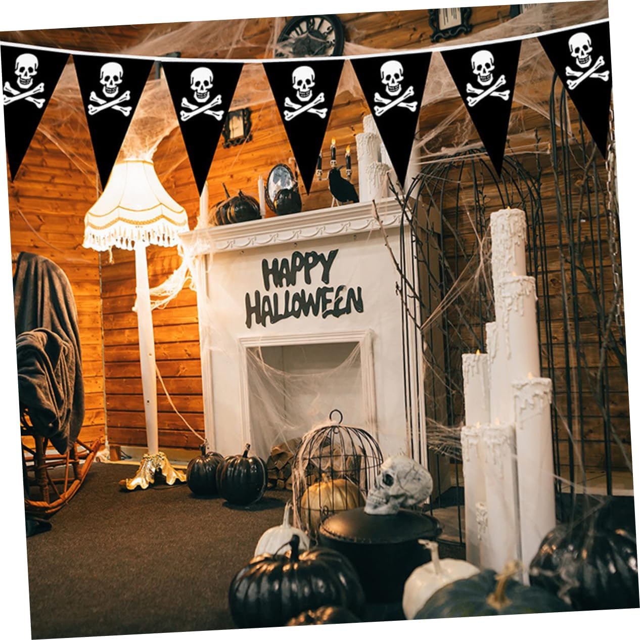 Lo stendardo con bandiera pirata perfetto per Halloween, festival dei fantasmi, carnevale, casa stregata e altro ancora. Facile da esporre ovunque tu voglia per creare un'atmosfera da festival spettrale e inquietante. Entra nello spirito di Halloween decorando la tua casa con questo striscione. Realizzato in PE resistente, emette colori brillanti e vibranti che non sbiadiranno a lungo. Doppia cucitura, resistente all'usura. Da esporre su cortili, porte, finestre, sporgenze, rami di alberi, cancelli, ecc. Questi divertenti oggetti di scena per feste di Halloween possono essere utilizzati per qualsiasi intrattenimento o festa a tema, aggiungendo molto divertimento alla tua festa.