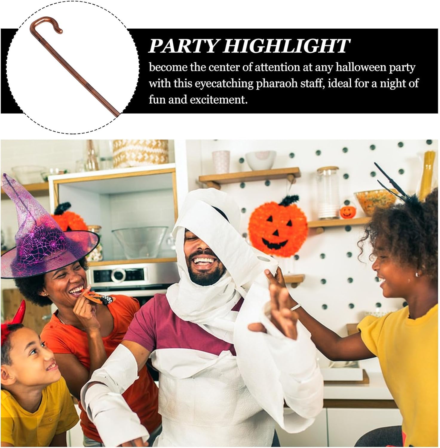 Pezzo forte di Halloween: fai un'impressione indimenticabile a qualsiasi evento di Halloween con questa bacchetta magica. È concepito come pezzo da spettacolo, accessorio per il personale del faraone e costume per il personale. Performance: aumenta le tue performance con il pentagramma e dai alla tua esibizione un tocco misterioso e magico. bastone di plastica, accessorio per feste di Halloween Stile dell'antico Egitto: aggiungi un tocco di antico Egitto al tuo costume con questo bastone da passeggio, ideale per un look storico, bastone da passeggio per cosplay, bastone da pastore mago Stella della festa di Halloween: diventa la star di qualsiasi festa di Halloween con questo bastone impressionante che ti farà risaltare, bastone del pastore di Halloween, bastone del costume del faraone Uso multi-evento: adatto per feste di Halloween, spettacoli teatrali e cosplay. Questo bastone è un oggetto versatile per varie occasioni, un bastone da faraone in plastica, un finto bastone da passeggio