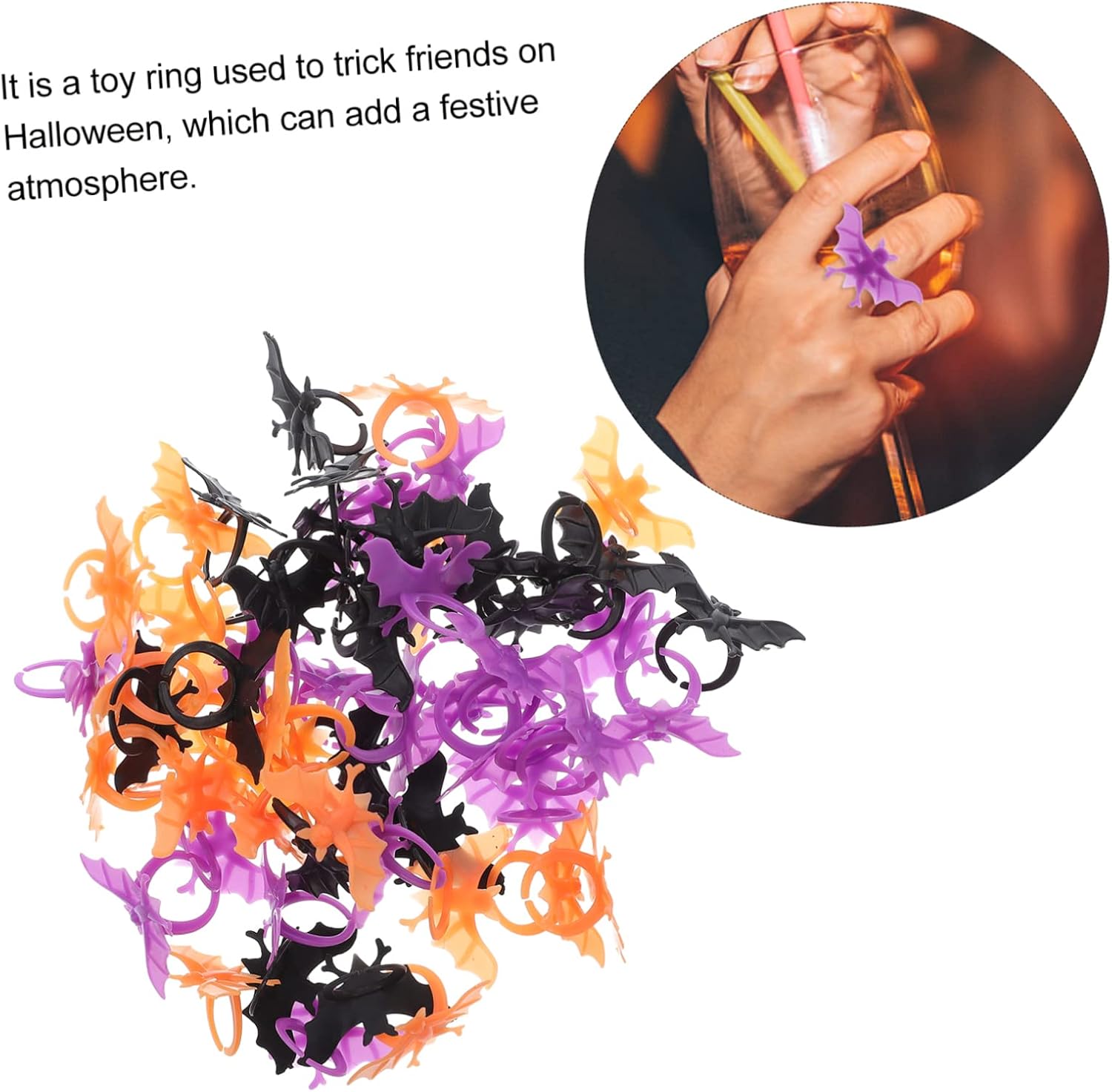 Accessorio per le feste - È molto adatto come oggetto di scena per Halloween, anello giocattolo per bambini Anello di Halloween - facile da indossare e da togliere, i bordi sono lisci e non danneggiano la pelle. Forniture per feste con anelli di pipistrello finti - tre colori diversi che puoi combinare liberamente, anello di pipistrelli giocattolo Anello di pipistrelli di Halloween - è un anello giocattolo che può essere utilizzato per ingannare gli amici di Halloween e può creare un'atmosfera festosa. - Anello in plastica per pipistrello: il design della forma è interessante e bello e ci sono tre colori diversi che possono essere combinati a piacere. Anello per vestire Halloween