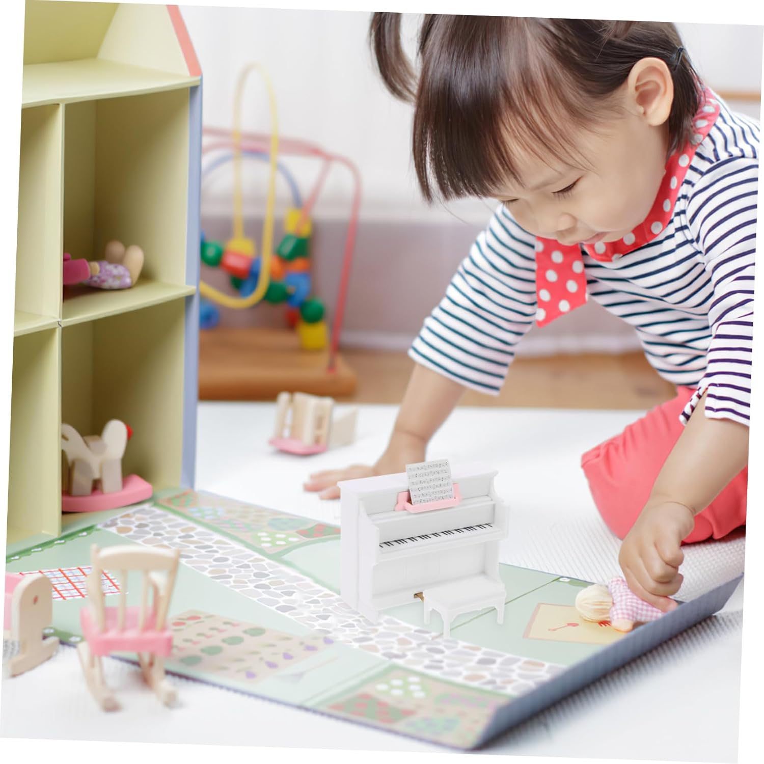 Mini di strumento musicale: dotato di resistenza alla rottura, molto pratico, con un'eccellente consistenza, mini pianoforte e sgabello Mini pianoforte da casa: puoi metterlo in una mini casa per dettagli più realistici, dandoti un'impressione visiva diversa, mini oggetto di scena per mobili Mini di pianoforte: realizzato con cura e delicatezza, con un alto grado di riproduzione realistica, impossibile da mettere giù, modelli di strumenti musicali in miniatura Accessori per scene in miniatura: superficie liscia, aspetto semplice e vivido, decorativo, un perfetto ornamento per scene di mini case, mini strumento musicale Mini pianoforte per casa delle bambole: adatto per la decorazione della casa, scena paesaggistica in miniatura, mini casa o qualsiasi altro posto che ti piace, strumento musicale in miniatura