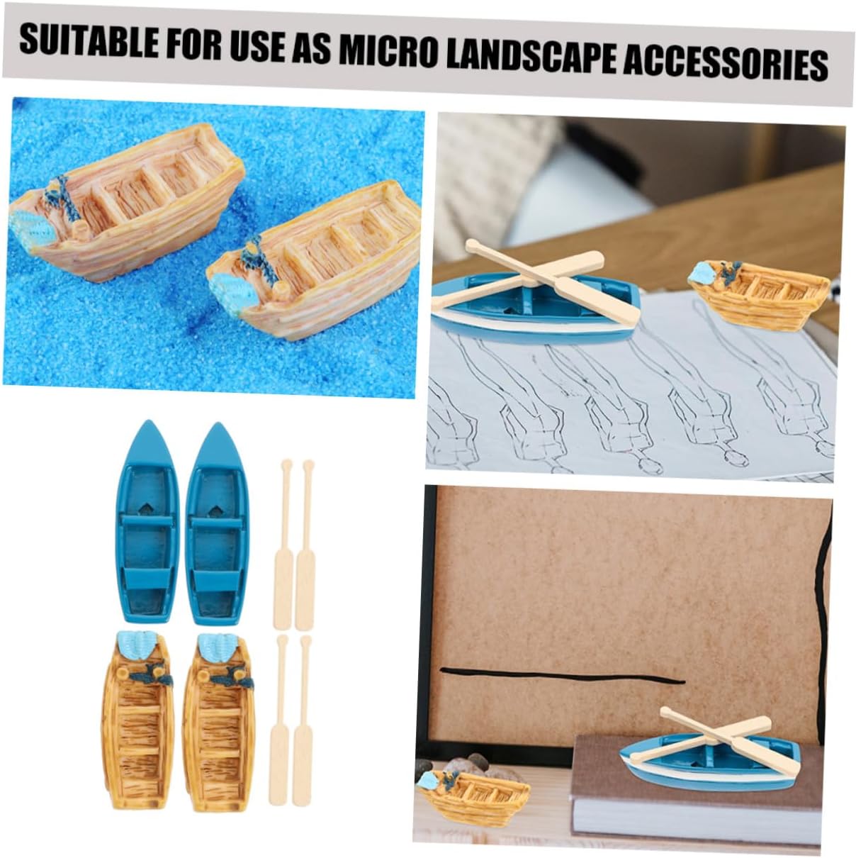 Piccole barche: buona struttura con eccellente fattura, queste barche sono ottime decorazioni per case delle bambole, decorazioni per micro paesaggi, tavoli di sabbia e altro ancora, Barche da spiaggia Barca: questo set di mini barche è un'eccellente scelta regalo per famiglie o amici, piacerà molto, Piccola barca a remi Barca in miniatura per case delle bambole: dimensioni compatte e peso leggero, può essere posizionata ovunque in casa, camera da letto, soggiorno, sala da pranzo come decorazione Be, modelli di mini barche Decorazione da spiaggia: con questo adorabile ornamento per barche in miniatura, mini barca, puoi facilmente creare il tuo paesaggio Figurina di barca in miniatura: adorabile e le delicate barche in miniatura possono anche essere una buona statuetta per i tuoi amici e compagni di classe, miniature di barche