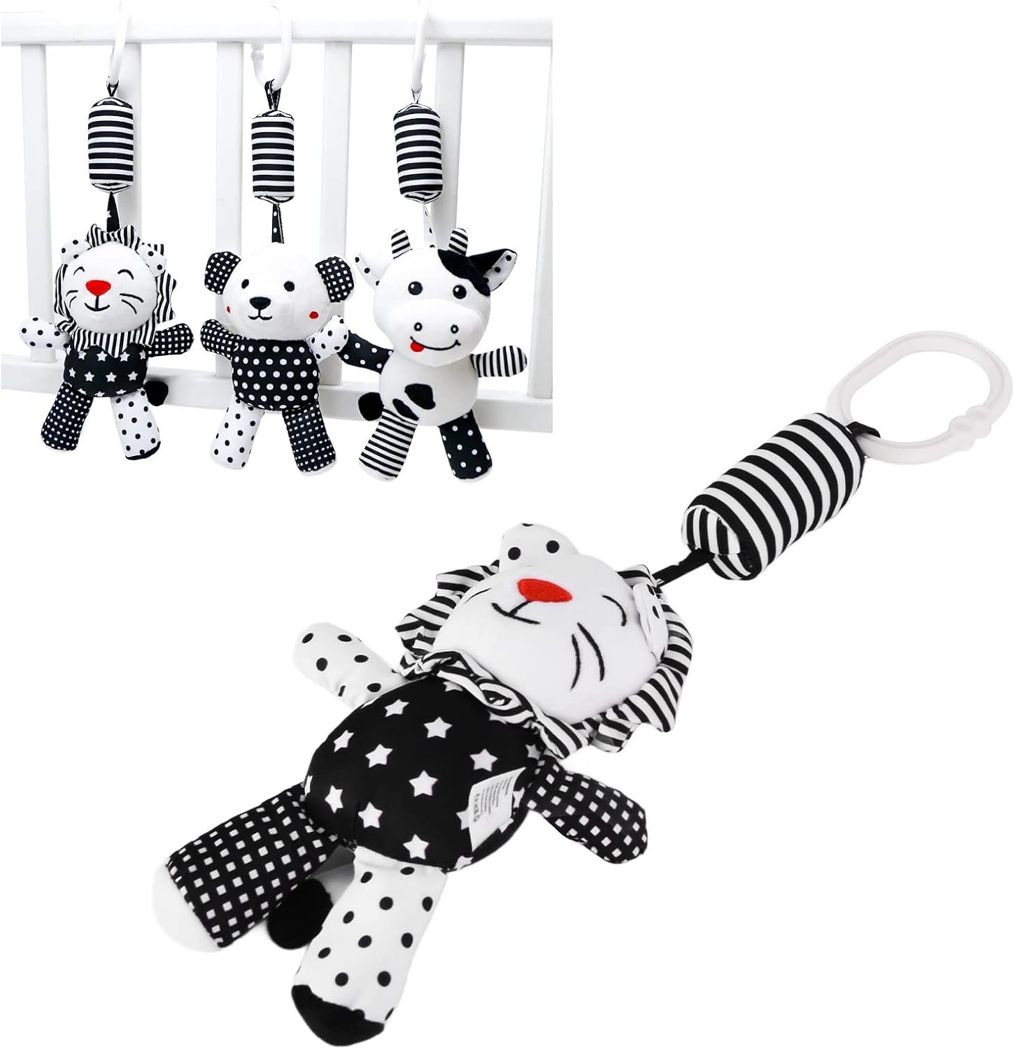 [Esperienza multi -sensoriale]: giochi di peluche con colori viventi, forme di animale carine e carta frusciante migliorano il senso visivo, uditivo e tattile del bambino. [Consapevolezza degli animali]: impara i nomi e i colori degli animali giocando, promuovi lo sviluppo cognitivo e promuovi l'apprendimento precoce in modo piacevole. ; [Ricamo di lifestyle]: i dettagli dei peluche ricamati, promuovendo la concentrazione e un gioco più lungo. [Versatile e sicuro]: questi sonagli sospesi con materiale in tessuto di alta qualità sono adatti per passeggini, letti per bambini, sedili per auto e letti per bambini per garantire la sicurezza e la comodità del bambino.