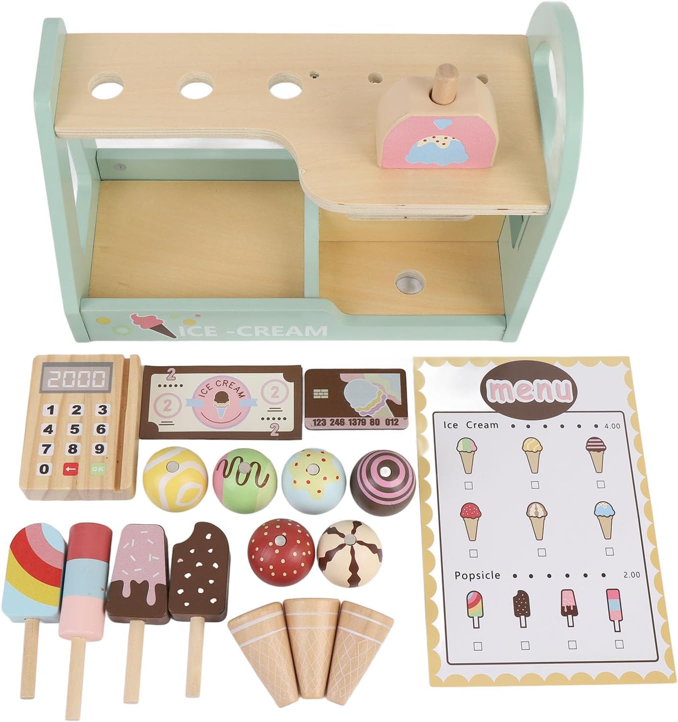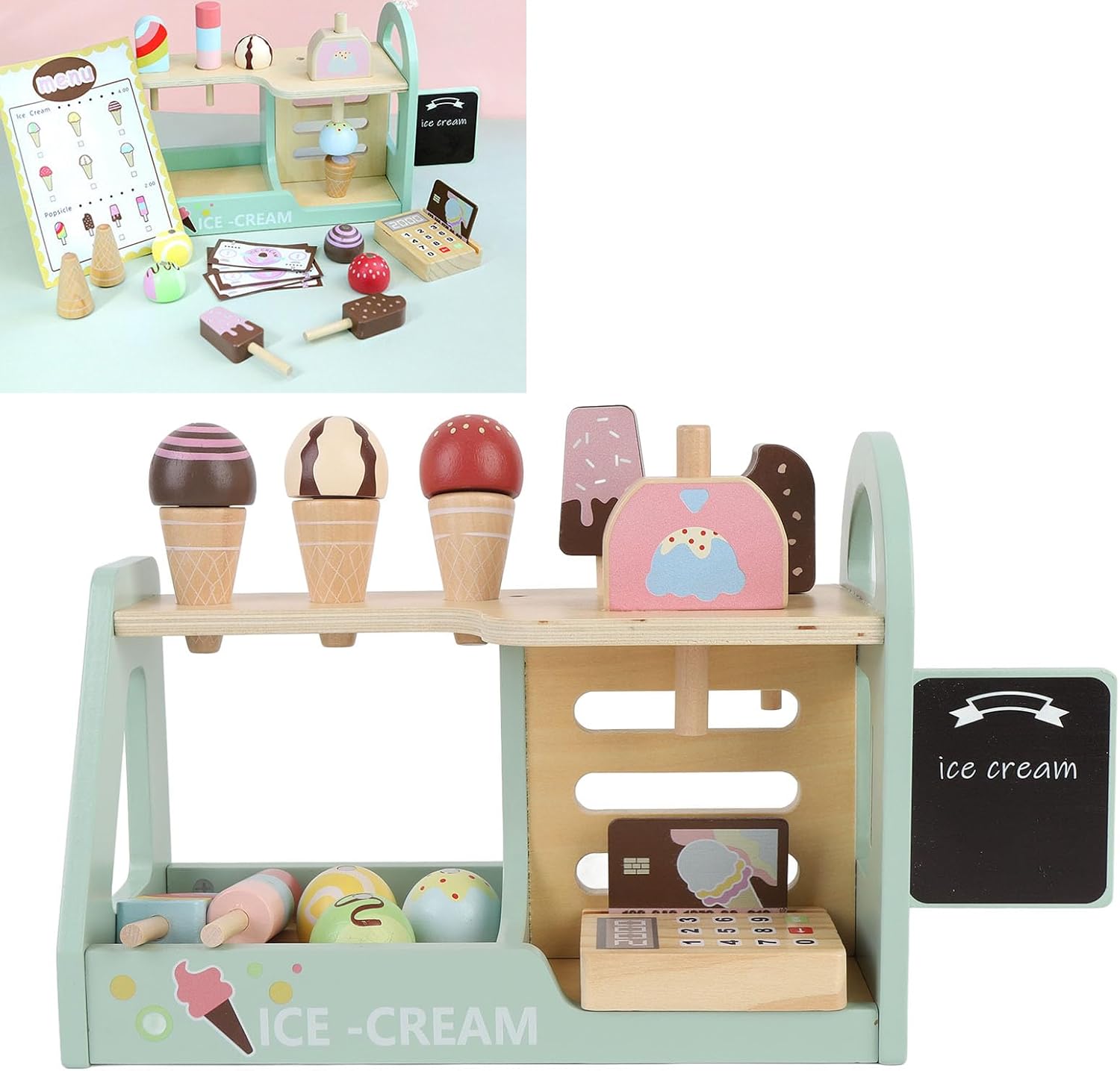 [Più sicuro e durevole]: realizzato con materiali per un'esperienza di gioco permanente e , che acquisisce il test del tempo. [Promozione della fantasia]: il design stimola la creatività quando si tratta del proprietario e dei clienti della gelateria. [Sviluppo di capacità motorie fine]: presenta elementi costitutivi per il gruppo di forme, migliora le abilità e il coordinamento nei bambini. [Interazione sociale]: promuove il gioco cooperativo quando il ruolo dei proprietari di negozi e dei clienti assume e promuove il lavoro di squadra. [Binding dei genitori-genere]: per un gioco interattivo che rafforza il legame tra genitori e bambini apprendendo e divertenti.