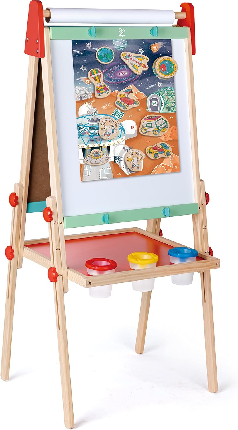 🌌 Magneti spaziali da colorare - Decora i magneti in legno con pennarelli glitter o con i tuoi accessori! Il set di magneti da colorare include uno sfondo per poster, 6 pennarelli in metallo e 10 magneti in compensato. È l’attività manuale ideale per unire l’apprendimento e il piacere di apprendere! 🪐 Per destrezza e creatività - La nostra scatola spaziale incoraggia il bambino a prendere, tenere e spostare i magneti. È un ottimo modo per sviluppare le capacità motorie e la destrezza ma anche per stimolare la creatività del bambino. I magneti da colorare aiuteranno anche a sviluppare le loro abilità narrative e linguistiche. 💚 Magneti da colorare dai 4 anni in su - Questa attività magnetica e creativa è adatta a bambini dai 4 anni in su. Aggiungerà un tocco di magia alle attività manuali del tuo bambino! Le attività di colorazione sono ideali per incoraggiare la creatività e sviluppare le capacità motorie dei bambini mentre manipolano i pastelli per colorare. 🎲 Giocattolo in legno sicuro e responsabile - Questo gioco magnetico per bambini è adatto alle mani piccole per facilitarne l'utilizzo e la creatività del bambino. Gli accessori rispettano i più severi standard di sicurezza e utilizzano materiali eco-responsabili. Questo set è ideale per liberare l'anima artistica di tuo figlio e incoraggiarlo a sviluppare la sua immaginazione. 🎎 Hape - Marchio di fama mondiale di giocattoli evolutivi in legno e giochi educativi, il nostro obiettivo è sviluppare lo spirito di iniziativa dei bambini attraverso esperienze divertenti. Dal 1986 creiamo con passione giocattoli eco-responsabili, con i quali i bambini amano giocare mentre imparano e scoprono il mondo.