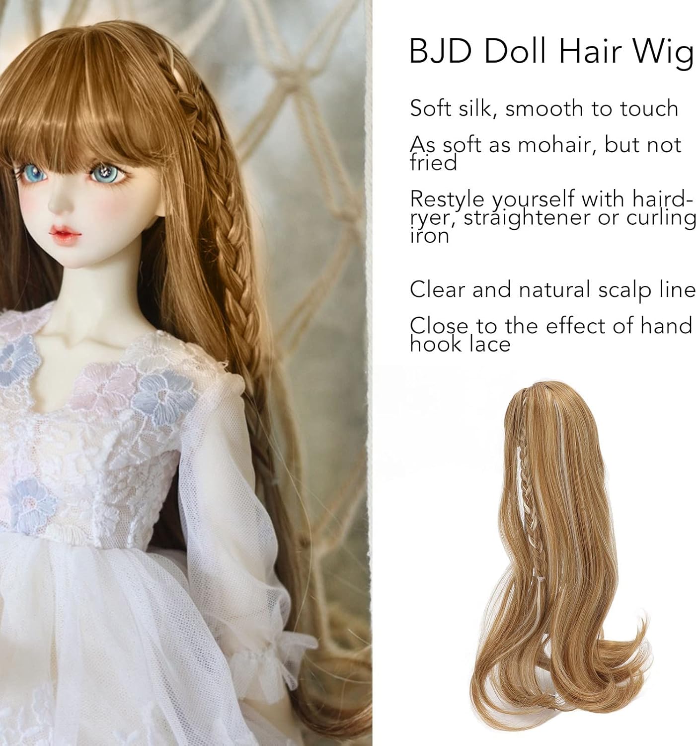 【Materiale Premium】--- Realizzata in seta termica morbida e rete traspirante, questa parrucca per bambole BJD offre una texture setosa e confortevole. La superficie liscia simula i capelli naturali senza causare irritazioni. Adatta per sessioni fotografiche e display prolungati. 【Personalizzazione Flessibile】--- Puoi modellare i ricci con phon, piastra o ferro arricciacapelli per creare acconciature uniche. Ideale per chi ama cambiare stile frequentemente. La struttura elastica mantiene la forma anche dopo ripetuti rimodellamenti. 【Design Realistico】--- La linea della scriminatura simulata con micro-maglia HD crea un effetto cuoio capelluto naturale. Perfetta per diorami e concorsi dove il realismo u00e8 prioritario. Include frangia regolabile che nasconde la rete frontale. 【Sicurezza e Stabilitu00e0】--- I rinforzi interni alle tempie prevengono lo scivolamento durante i movimenti della bambola. Struttura a doppio strato con cuciture rinforzate che evitano perdite di capelli sintetici. 【Compatibilitu00e0】--- Progettata per bambole BJD 1/3 (circonferenza testa 21-24cm). Include guida dimensionale per verifica. Non adatta all'uso umano. Completa il travestimento per temi vintage, fantasy o quotidiani.