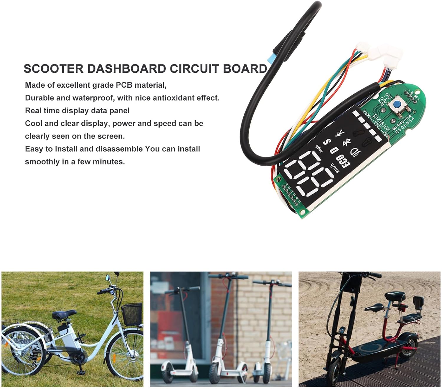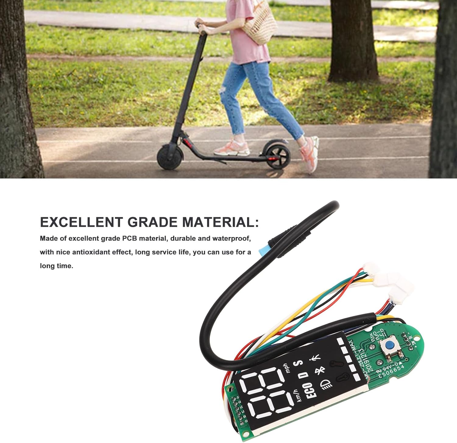 DISPLAY CHIARO: il circuito Bluetooth dello scooter può visualizzare il pannello dati in tempo reale. La potenza e la velocità possono essere chiaramente visualizzate sullo schermo, il che ti consente di visualizzare comodamente i dati di guida attuali in qualsiasi momento. INSTALLAZIONE RAPIDA: facile da installare e rimuovere, puoi installarlo senza problemi in pochi minuti, risparmiando tempo ed energia. Il circuito stampato del cruscotto dello scooter è adatto per gli scooter elettrici F30. MATERIALI: Realizzato con materiali PCB selezionati, ha una lunga durata e può essere utilizzato a lungo. Puoi usarlo con sicurezza e guidare in sicurezza anche quando piove. NOTA: prima di ordinare questa scheda Bluetooth, verificare se è danneggiata solo la scheda Bluetooth. Solo la scheda Bluetooth è danneggiata e il controller principale non è danneggiato e può essere sostituito direttamente. SOSTITUZIONE: Il cruscotto dello scooter è molto adatto per sostituire quelli vecchi e danneggiati, facile da installare e utilizzare, in modo che il tuo scooter elettrico possa essere riportato al normale utilizzo.