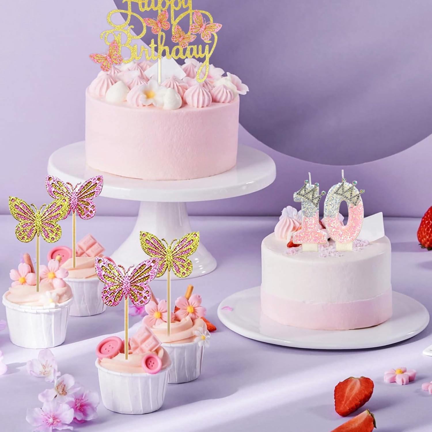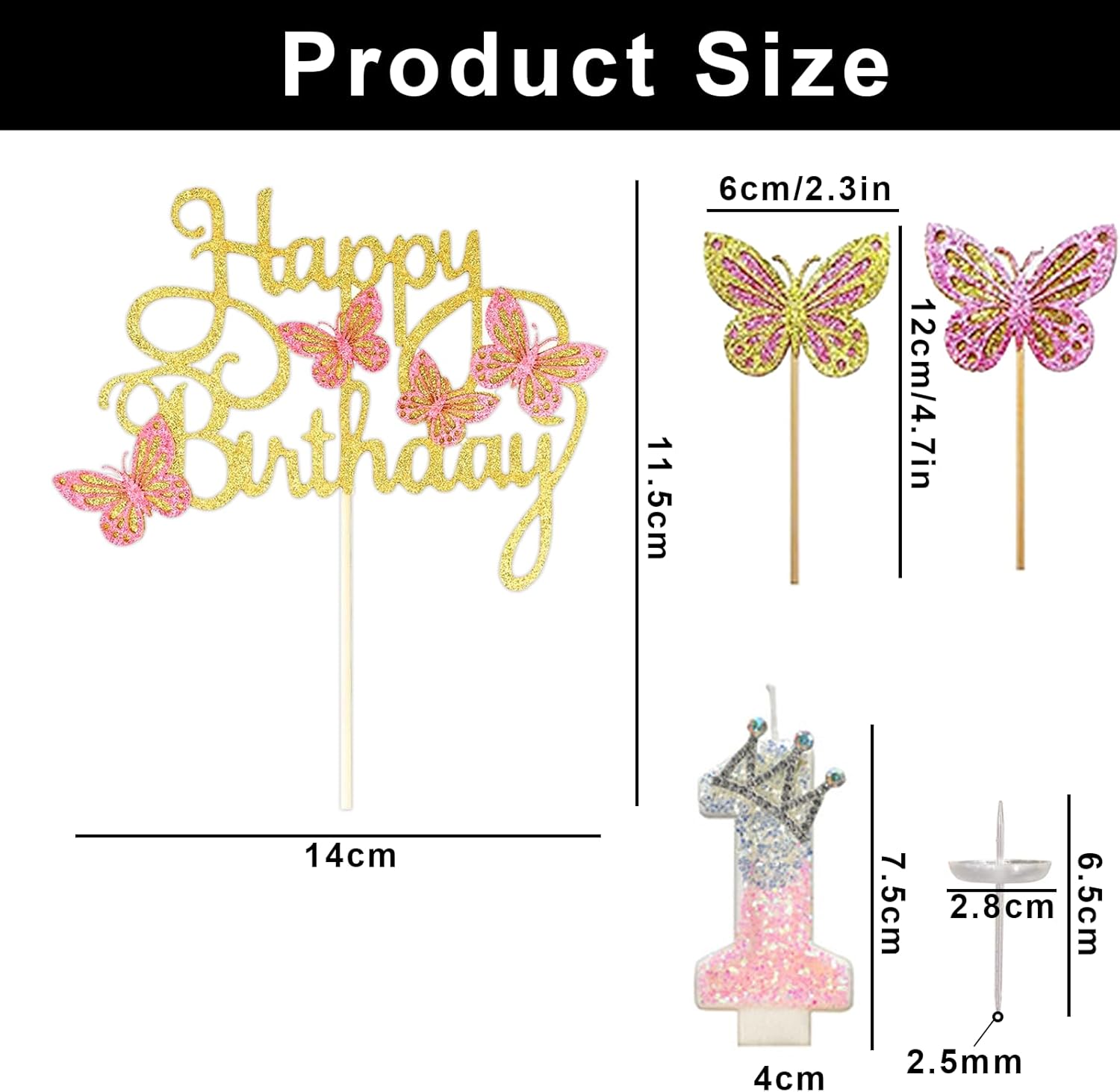Set di compleanno a farfalla: include 1 candela con numeri rosa e oro + 12 topper per cupcake con farfalle scintillanti. Decorazione perfetta per torte per ragazze. Decorazione per torta riutilizzabile con effetto 3D Decorazione per torta con brillantini in oro rosa. Decorazione a farfalla di alta qualità con accenti dorati. Numero 1 candela (altezza 7,5 cm) si adatta a qualsiasi decorazione per torte. Topper a forma di farfalla (12 cm) per torte e cupcake Versatile decorazione di compleanno: ideale per decorazioni per torte di compleanno, baby shower o feste di primavera. Facile da usare – elementi decorativi facilmente posizionabili Set completo con 12 mini farfalle. Include Farfalla "Happy Birthday" (14 cm) + 12 piccole farfalle come decorazione per cupcake Decorazione per torta festiva per ragazze: decorazione a farfalla particolarmente popolare per il compleanno. In confezione decorativa