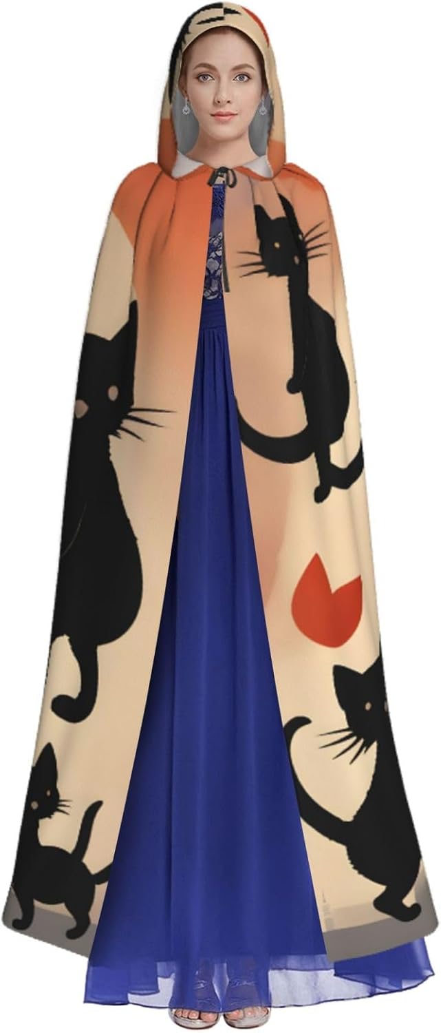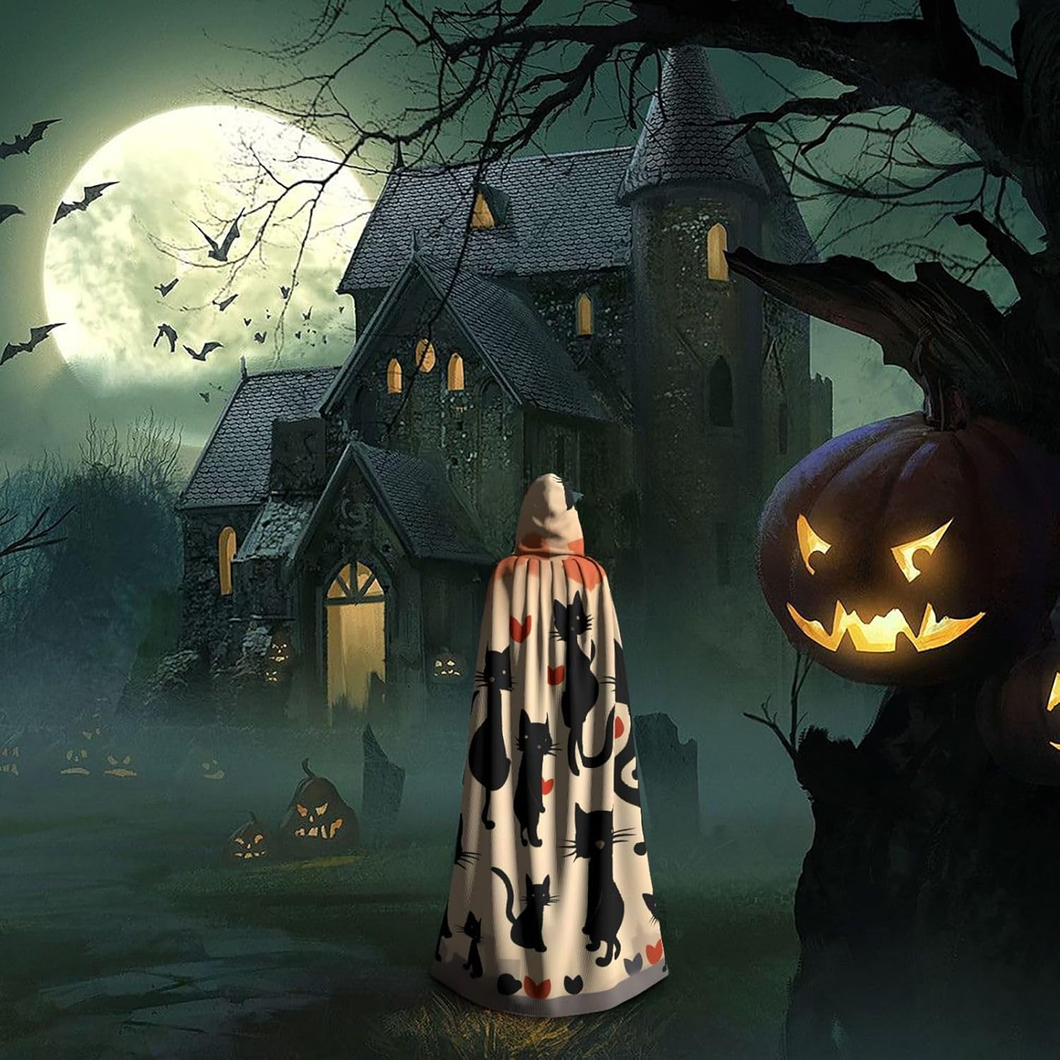 Ruba lo spettacolo a qualsiasi evento di Halloween o a tema con il nostro mantello con cappuccio. Realizzato con un tessuto confortevole, non prurito, questo mantello con stampa Happy Walking Kitty è progettato per assicurarti di distinguerti tra la folla. Il mantello è facile da indossare e togliere, grazie alla cravatta e all'assenza di una cerniera. Con un design facile da pulire, può essere lavato in lavatrice o a mano per garantire che sia sempre pronto per il tuo prossimo evento. Prova la perfetta miscela di comfort, stile e versatilità con il nostro mantello con cappuccio.