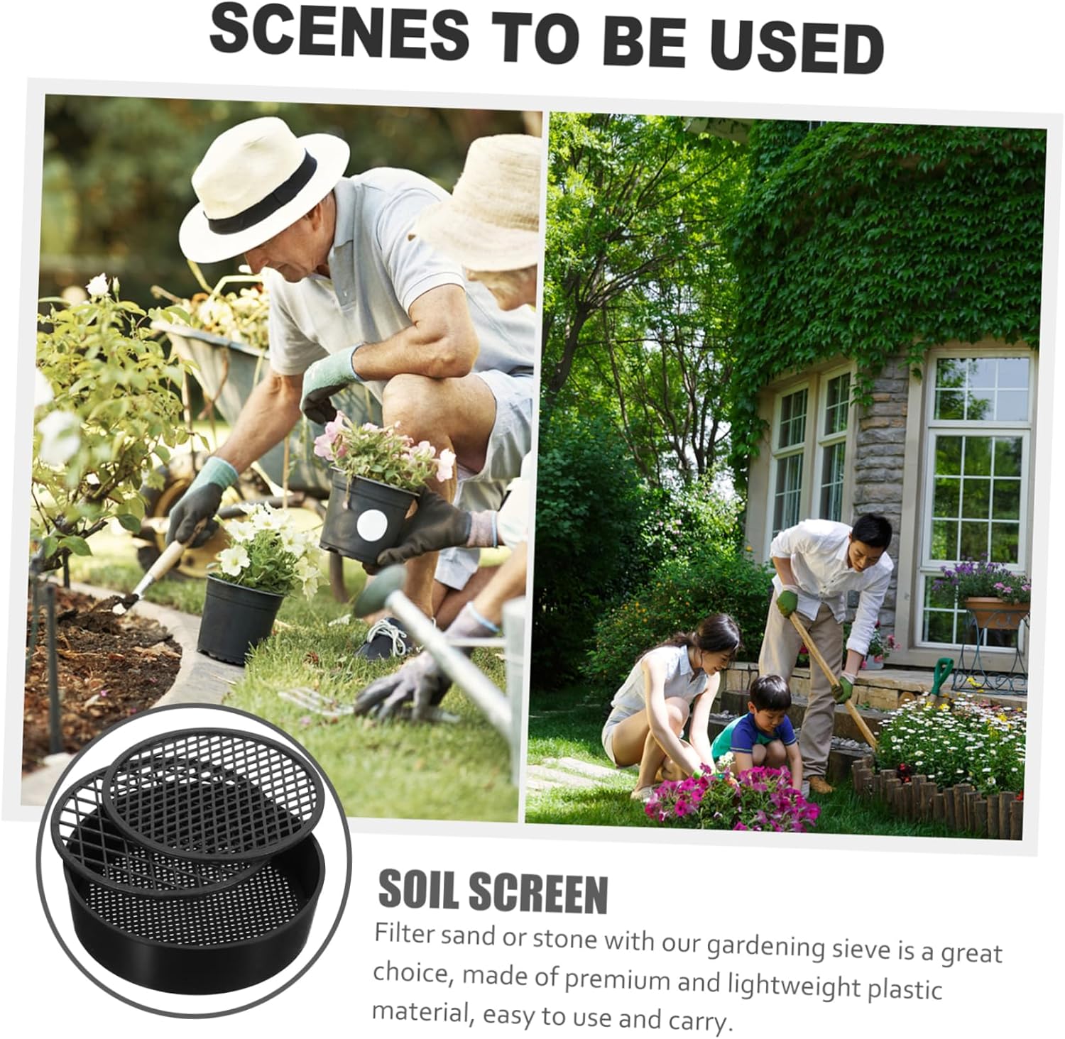 Setaccio per lo sporco: un utensile da giardinaggio essenziale per una migliore esperienza di semina e migliora l'efficienza lavorativa, setaccio da giardinaggio Setaccio per terreno - con maglia uniforme, adatto per setacciare pietre e sabbia, ottimo per piantare in giardino, setaccio per terreno Setaccio per terreno da giardino: questo set di attrezzi da giardino è un perfetto per un amante del giardinaggio, coloratore per terreno in plastica Setaccio da giardino: il semplice nero abbina al tuo orto verde o al tuo vivaio di fiori, setaccio da giardino Setaccio fine per terreno per giardinaggio: leggero, facile da maneggiare, comodo da usare per una maggiore praticità, setaccio per terreno per giardinaggio