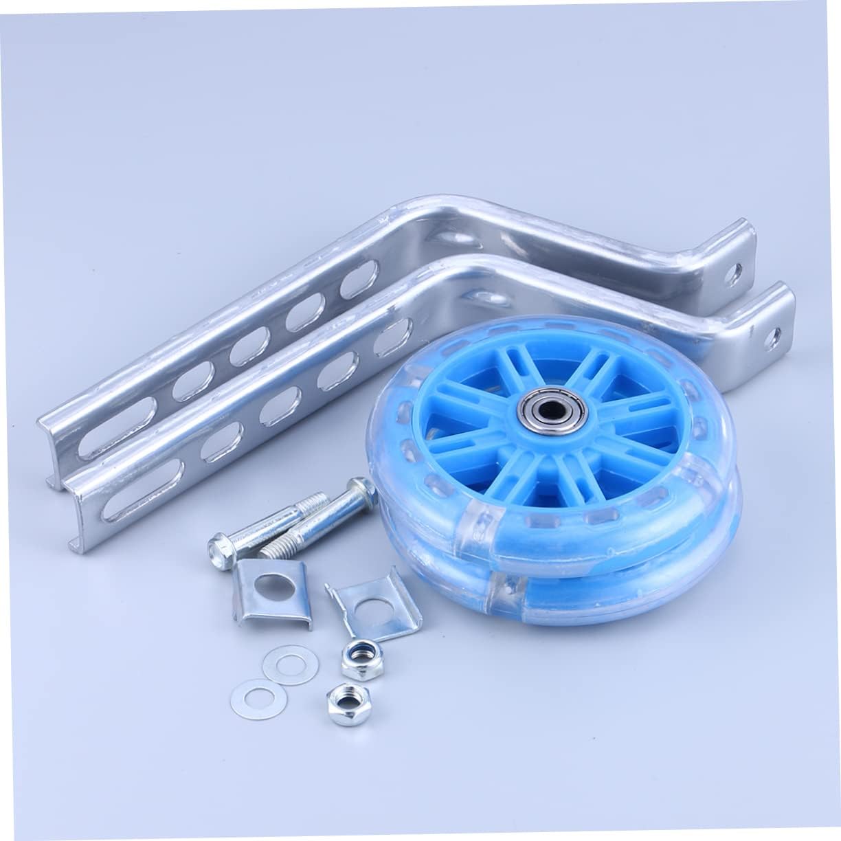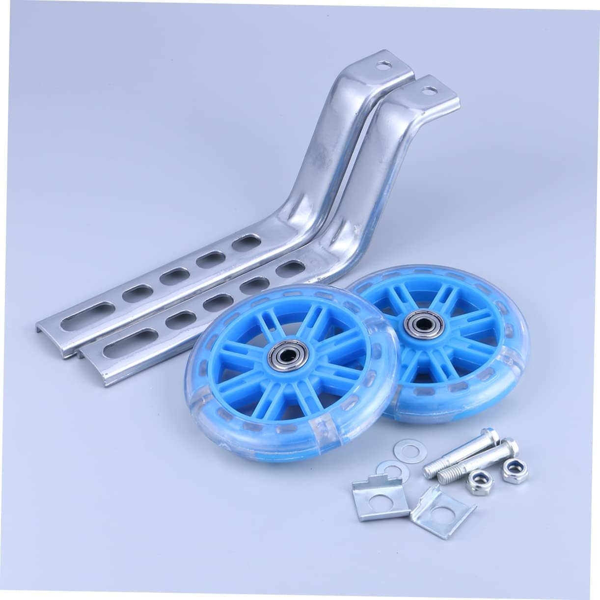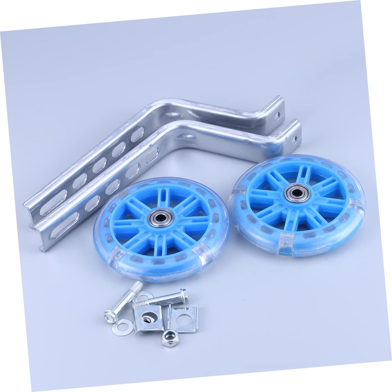 Ruote per bici da allenamento silenziose: realizzate in materiale ad alta resistenza e resistente ai raggi UV per evitare lo sbiadimento del prodotto. Accessori per bici: le ruote di supporto possono offrire al tuo bambino il miglior inizio con equilibrio e sicurezza su due ruote. Adesivo da parete ad arco: la ruota ausiliaria può illuminarsi durante la guida dell'auto. Bilanciere ausiliario: adatto alla maggior parte delle biciclette. Accessori per biciclette: le ruote di supporto sono robuste e regolabili, fornendo la sicurezza e la stabilità necessarie.