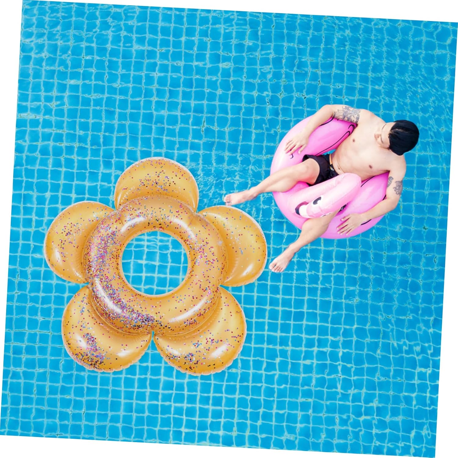 Anello da nuoto con motivo floreale: ti piacerà questo squisito anello da nuoto e ti piacerà nuotare, galleggiante creativo per piscina Salvagente di sicurezza: usa questo salvagente estivo divertente sulla piscina gonfiabile! ottimo per i principianti che imparano a nuotare e offre ore di divertimento per nuotare e nuotare, salvagente di sicurezza Galleggiante per il nuoto: divertimento in , festa in piscina, ritrovo in famiglia, momento di ritrovo con gli amici, compleanno e festa in spiaggia, galleggiante per piscina Anello da nuoto per piscina: leggero, portatile, facile da trasportare e utilizzare, può offrirti praticità, anelli da nuoto Anello da nuoto: il design a forma di fiore di paillettes rende l'anello da nuoto adorabile e attraente, anello da nuoto