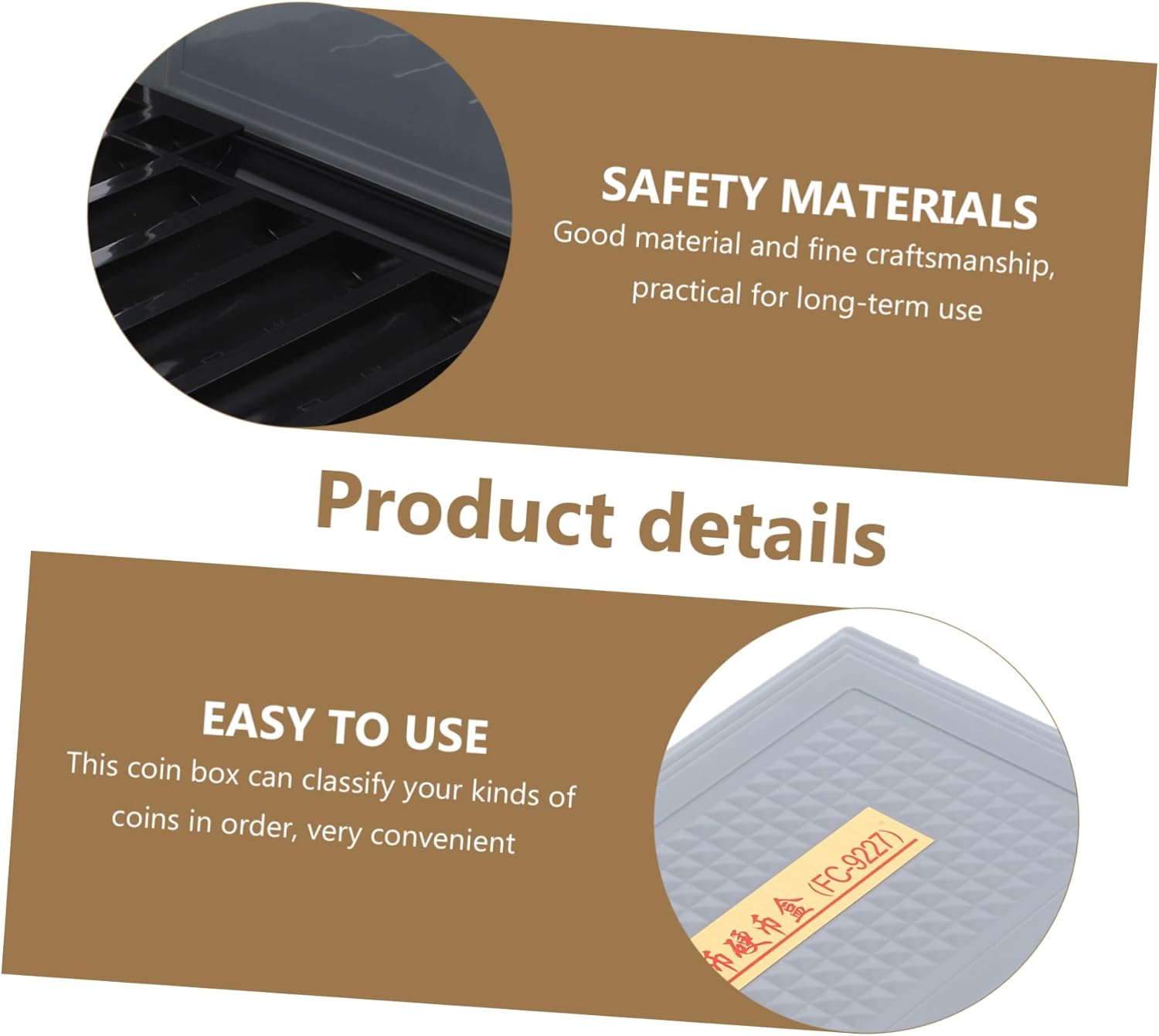 Accessorio per la casa - ti consente di accedere rapidamente alla tua collezione di monete, risparmia tempo, è piccolo e raffinato e non occupa troppo spazio, accessori per la banca Robusto contenitore per monete - molto adatto per cassieri al supermercato, venditori ambulanti nel mercato ortofrutticolo, custodia per la casa Custodia per la conservazione - realizzata in buon materiale plastico, questa scatola è durevole, ha un design divisorio ragionevole, è facile da riporre e trovare, Custodia riutilizzabile per monete per supermercato - puoi posizionare questa scatola nel tuo soggiorno, mobile TV, camera da letto o altri luoghi a tua scelta, accessori per supermercati Contenitore per monete resistente all'usura: può essere perfetto per i tuoi amici che sono cassieri o venditori ambulanti Struttura stabile, non facile da allentare o cadere Dimensioni ridotte e grande capacità, per ricevere vari piccoli oggetti, contenitore per monete per la casa