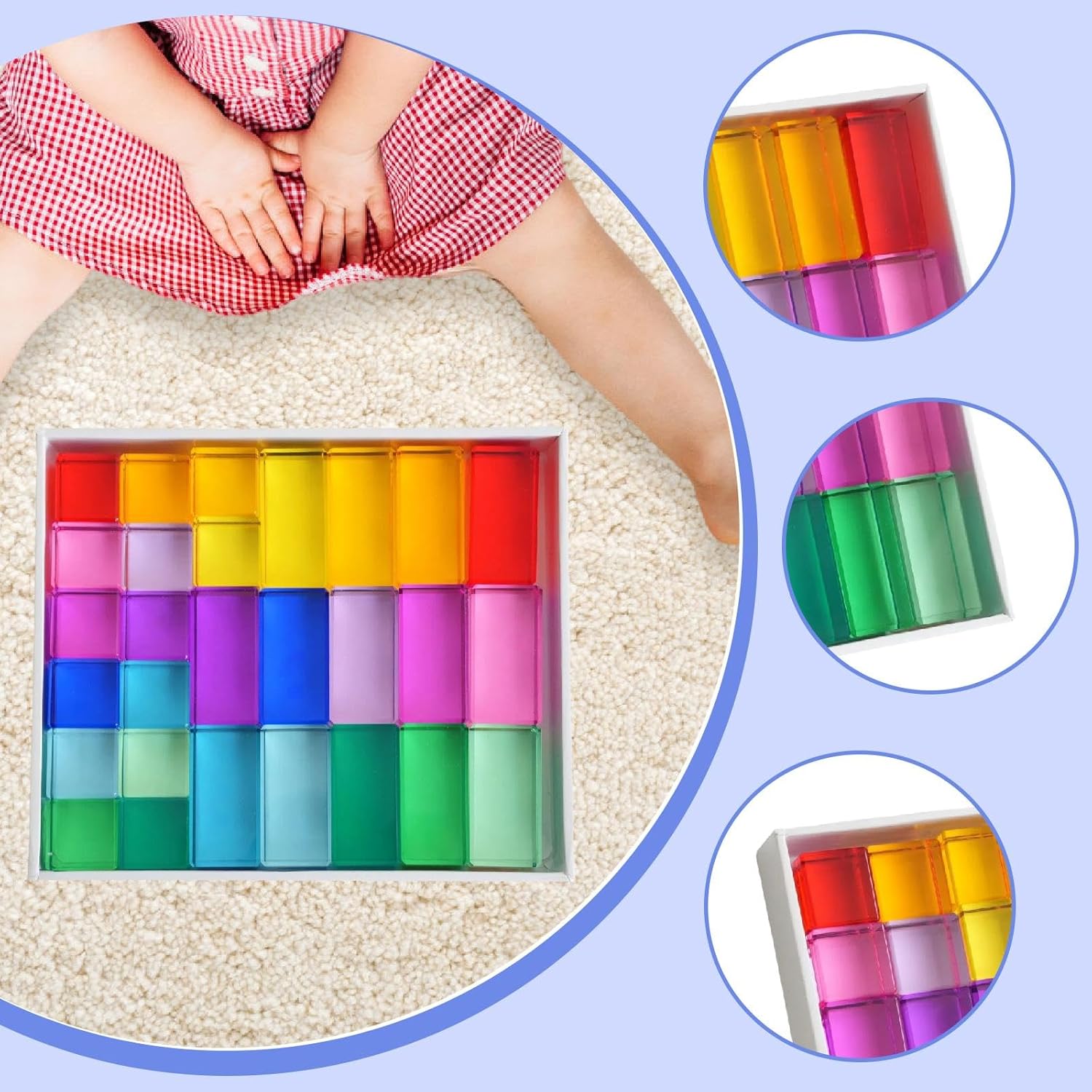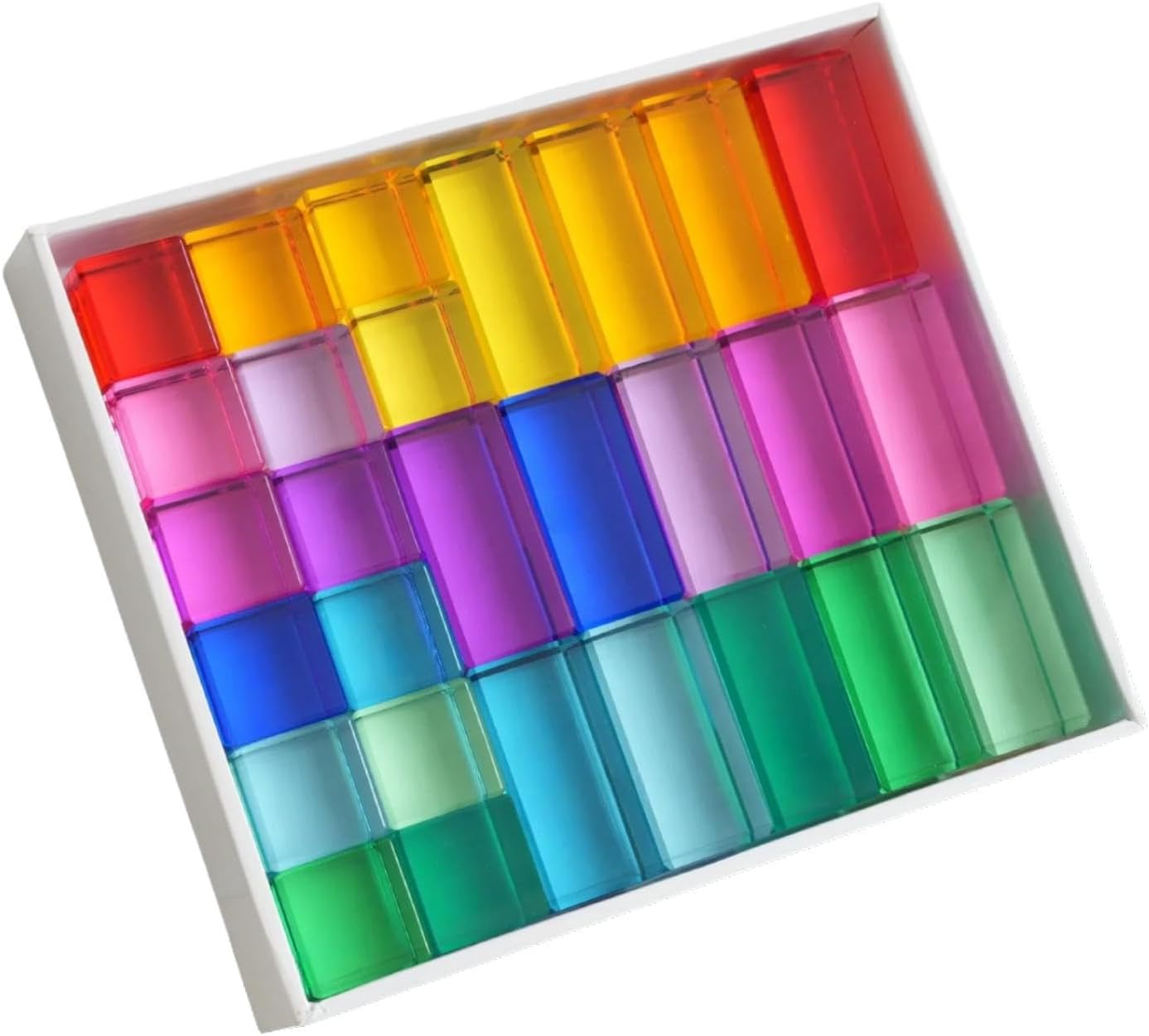 【Materiale di qualità】: il set di blocchi da costruzione arcobaleno è realizzato in acrilico di qualità, con bordi lisci, per essere maneggiato anche dalle manine dei più piccoli. Questo set di costruzione completo è per il divertimento, offrendo un giocattolo di lunga durata per ore di gioco educativo. 【Strumento di apprendimento fondamentale】: Più di un semplice giocattolo, questo set di cubi in acrilico è una potente risorsa educativa. La varietà di colori e forme aiuta i bambini a imparare a ordinare, classificare e riconoscere schemi, sviluppando efficacemente abilità cognitive essenziali, coordinazione occhio-mano e capacità di problem solving precoce. 【Esplorazione sensoriale】: Realizzati in acrilico di alta qualità, questi cubi arcobaleno presentano colori brillanti e trasparenti. Catturano e giocano con la luce, creando un'esperienza visiva straordinaria che stimola la percezione del colore del bambino e accende la sua curiosità per che lo circonda. 【Stimola la creatività e le abilità spaziali】: il design del cubo incoraggia la costruzione multidimensionale, andando oltre i puzzle piatti. Mentre i bambini impilano, bilanciano e costruiscono i loro capolavori unici, migliorano le loro capacità motorie fini, il ragionamento spaziale e il pensiero creativo attraverso il gioco pratico. 【Ideale per il gioco di gruppo e indipendente】: Adatto sia per il legame familiare a casa che per attività collaborative in contesti educativi come o centri di apprendimento precoce. Questi blocchi incoraggiano il lavoro di , la comunicazione e l'interazione sociale mentre i bambini lavorano per costruire ed esplorare, rendendo l'apprendimento un'avventura condivisa.