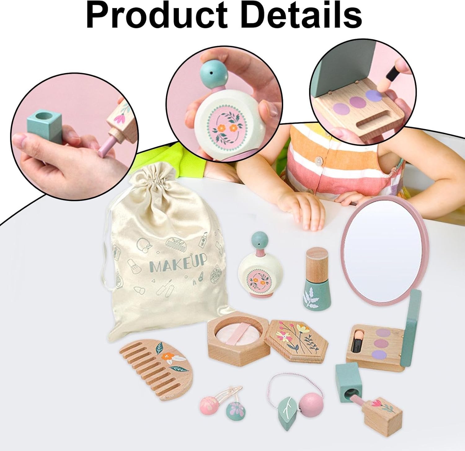 【Materiale di alta qualità】: Realizzato in legno di alta qualità, questo set di giocattoli per il trucco in legno è progettato per ore di gioco e garantisce divertimento a lungo termine per il tuo bambino. 【Giocattolo educativo interattivo】 Questo set di trucchi per bambini non è solo divertente, ma promuove anche lo sviluppo dell'intelligenza emotiva, migliorando la percezione sensoriale e le abilità pratiche attraverso esperienze di gioco interattive. 【Ottima idea regalo】 Giocattolo per salone di bellezza per l'apprendimento precoce, ideale per compleanni, vacanze o altre occasioni speciali. Divertente ed educativo, questo set di giocattoli per il trucco in legno delizierà sicuramente chiunque.,Sviluppo delle abilità: questo set di trucco per il trucco incoraggia lo sviluppo delle capacità motorie, della coordinazione occhio-mano e delle abilità sociali attraverso giochi di ruolo e giochi interattivi.