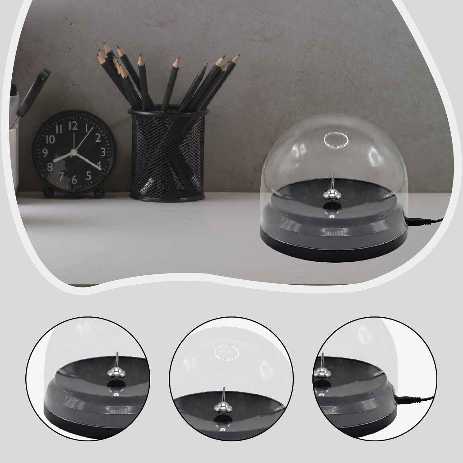 【Dimensioni adatte】: la base del giroscopio ha un diametro di 15 cm/5,91 pollici con un'altezza di 3,5 cm/1,38 pollici, mentre l'altezza totale inclusa la copertura raggiunge cm/4,72 pollici, rendendolo una dimensione ideale per l'esposizione su scrivanie o scaffali 【Set completo】: Ogni acquisto include 1 set completo dell'ornamento giroscopio con la sua copertura protettiva, per essere esposto o regalato 【Design innovativo】: questo giocattolo giroscopico alimentato tramite USB è dotato di una copertura protettiva, che lo rende un'aggiunta unica e accattivante a qualsiasi spazio 【Materiale di qualità】: realizzato in PP di qualità, questo decoro per scrivania Rotation Science è progettato per essere leggero e robusto, garantendo un uso prolungato e un divertimento 【Decorazione versatile】: che utilizzato come spunto di conversazione nel tuo soggiorno o come intrigante accessorio da scrivania al lavoro, questo giocattolo giroscopico aggiunge un tocco di arte moderna a qualsiasi ambiente