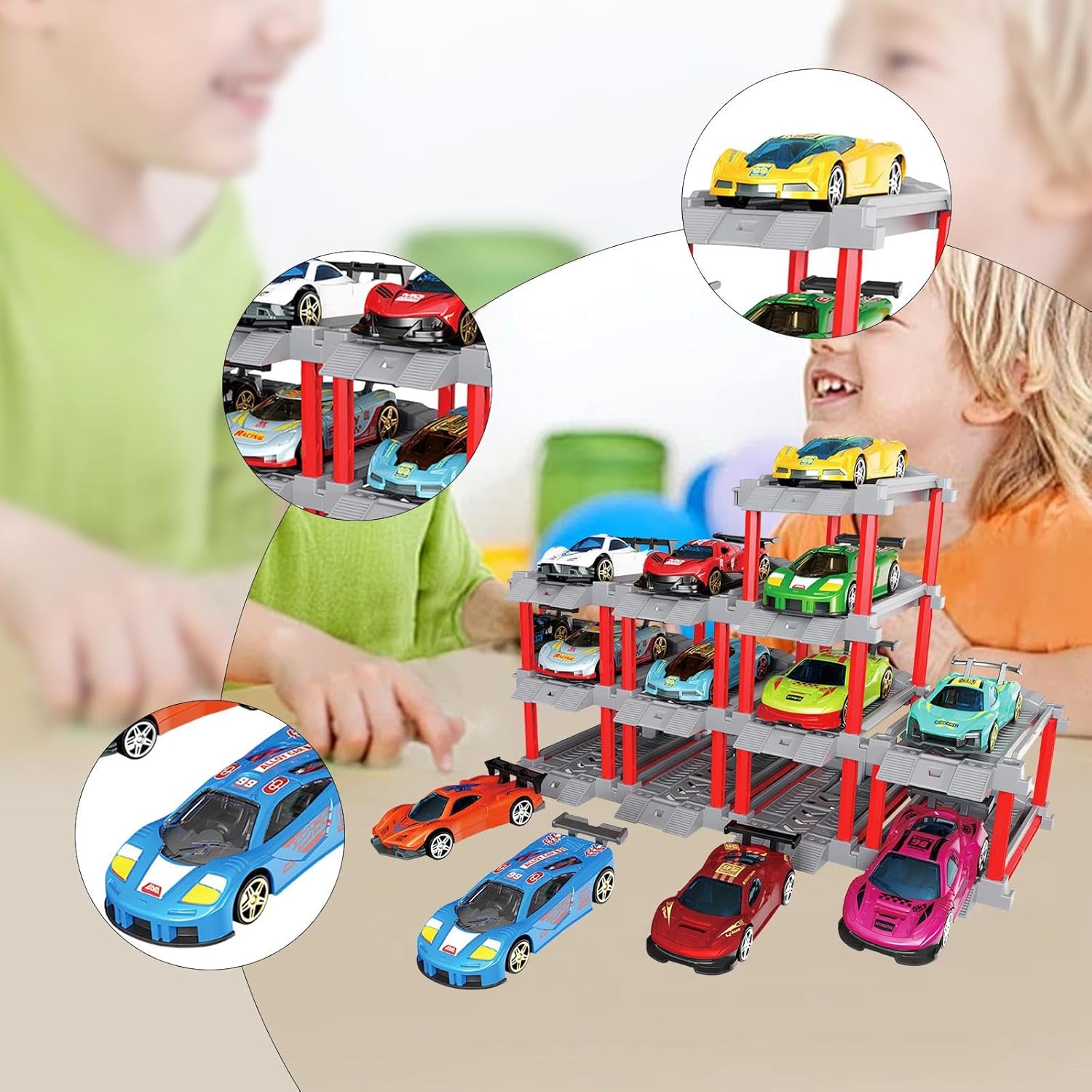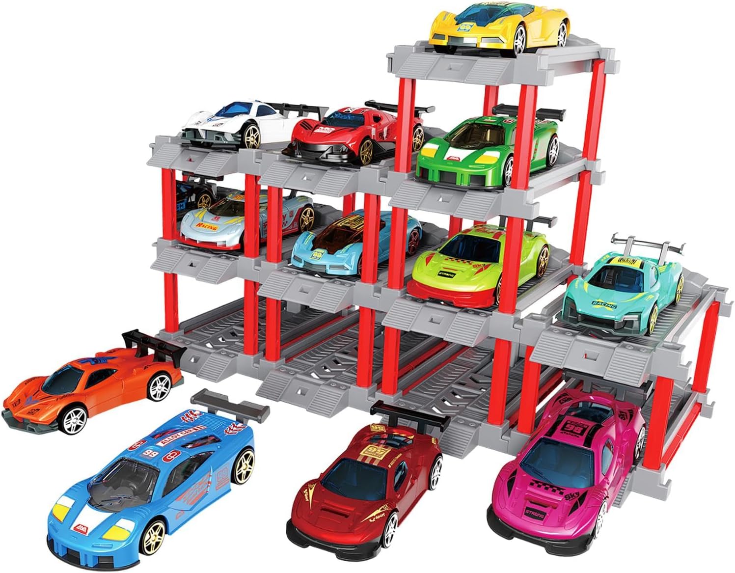 【Regalo perfetto】: questo giocattolo da gioco Garage è un regalo ideale che soddisfa interessi dei bambini per le auto, le attività di costruzione e il gioco competitivo 【Divertimento di costruzione fai da te】: funzione di costruzione di garage fai da te, i bambini possono costruire i propri parcheggi, sviluppando le loro capacità motorie e cognitive 【Gioco versatile】: questo giocattolo per auto pressofuse offre molteplici di giocare, incluso un lancio tramite pulsante, può anche essere alimentato dall'azione di trazione posteriore, consentendo un gioco indipendente anche fuori pista 【Materiali】: Realizzati in lega, questi vagoni a trazione posteriore sono dotati di 12 binari per il parcheggio e 12 vagoni in lega 【Giocattolo interattivo】: il set da gioco per garage aiuta anche i genitori a trascorrere del tempo di qualità con i propri figli mentre crescono