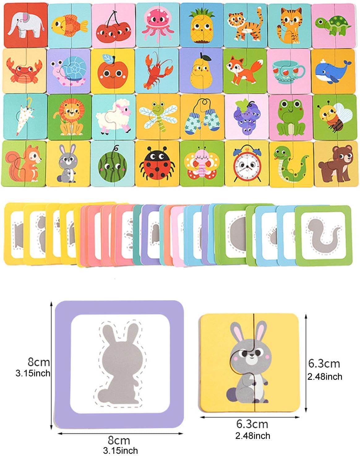 【Materiale】: il gioco da tavolo è realizzato in MDF di qualità, garantendo un utilizzo a lungo termine e offrendo un'esperienza di gioco sicura per i bambini piccoli 【Sviluppo precoce】: il giocattolo di abbinamento delle ombre aiuta i bambini a miorare le capacità di riconoscimento e a sviluppare la capacità di descrivere oggetti, supportando lo sviluppo del linguaggio e la crescita cognitiva in modo 【Giocattolo interattivo genitore-figlio】: ideale per il tempo di legame familiare, questo gioco educativo Shadow Paired incoraggia il lavoro di e l'interazione tra genitori e figli, migliorando al contempo le capacità di problem solving attraverso un gameplay coinvolgente 【Coinvolgente gioco di abbinamento delle ombre】: questo set di di abbinamento presenta diverse carte ombra di frutta, oceani, animali e necessità quotidiane, progettate per stimolare la curiosità e incoraggiare l'apprendimento precoce attraverso divertenti attività di abbinamento 【Pezzi facili da impugnare per le manine】: gioco di per bambini, con colori vivaci e pezzi spessi e robusti, delle dimensioni perfette per le manine dei più piccoli (carte da 8 cm x 8 cm / 3,15 pollici x 3,15 pollici, pezzi del da 6,3 cm x 6,3 cm / 2,48 pollici x 2,48 pollici), rendendo facile per i bambini afferrare e giocare in modo indipendente