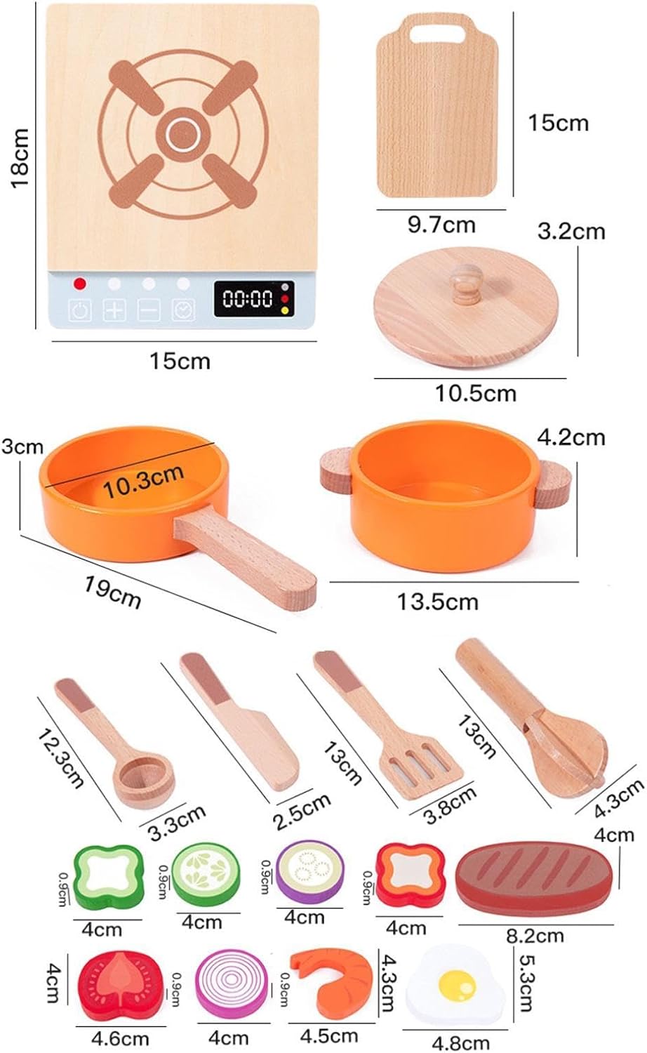 【Giocattolo da cucina】: set da cucina giocattolo in legno, accessori, simulazione di mescolare, tritare le verdure, soffriggere e preparare la zuppa, sviluppo delle abilità sociali 【Educativo】: il set da cucina giocattolo può coltivare le capacità manuali, organizzative e di stoccaggio dei bambini e coltivare la consapevolezza dei bambini nella condivisione delle faccende domestiche 【Ottimo regalo】: il set da gioco per cucinare è un regalo fantastico per bambini dai 3 anni in su 【Gioco di finzione】: Set di giocattoli da cucina per giochi di finzione, giochi di ruolo, che migliorano il riconoscimento dei colori, il riconoscimento degli utensili da cucina ed esercitano la capacità di coordinazione occhio-mano e la capacità di organizzazione e stoccaggio 【Simulazione】: il set da cucina per giochi di finzione include pentole e padelle giocattolo, pentole, utensili, tagliere finto, per giocare a cucinare e tagliare.