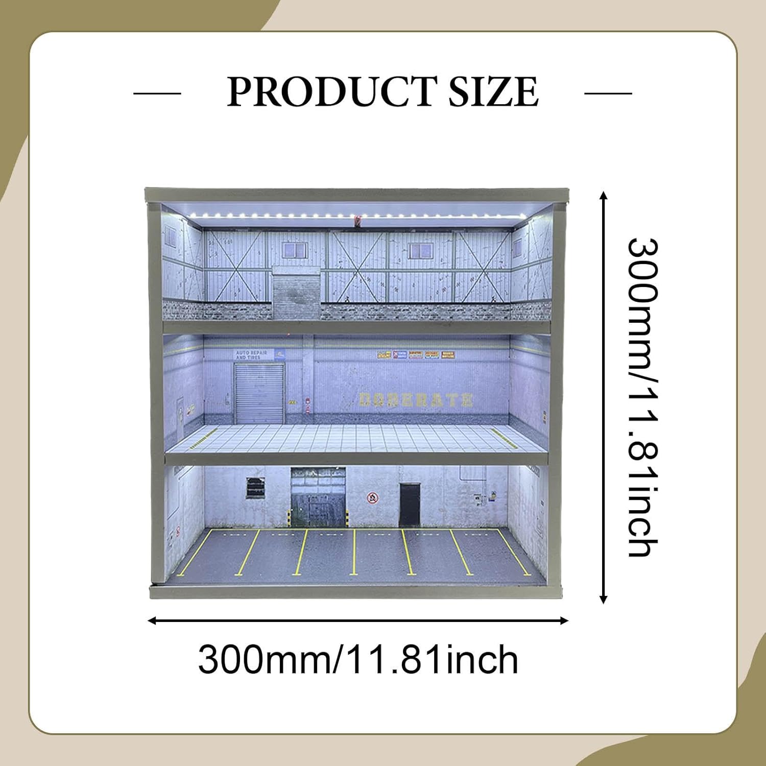 【Contenitore per 】: la vetrina espositiva per modellini di auto in miniatura a 3 livelli è adatta per riporre ed esporre modelli di auto in 1/64, proteggendo i tuoi modelli da polvere e danni. Facile da montare, adatta agli appassionati del fai da te. 【Ottimo regalo】: l'organizzatore per scatole portaoggetti per è un'ottima scelta regalo da collezione per appassionati e collezionisti di modellini di auto, ottimo per riporre, esporre, decorare, ecc. Dimensioni circa 30 cm x 11 cm x 30 cm / 11,81 pollici x 4,33 pollici x 11,81 pollici 【Modello di scena in miniatura】: Diorama realistico di un parcheggio, che offre un'atmosfera speciale per esporre i tuoi oggetti da collezione. Luce integrata, presa USB, accendi l'interruttore di controllo per illuminare 【Decorazione per la casa】: la vetrina per modellini di auto da garage è un grazioso ornamento da scrivania, un micro paesaggio decorativo e un oggetto di scena per foto, adatto per casa, ufficio, negozio, ecc. 【Materiale di alta qualità】: la scatola espositiva per scene di parcheggio è realizzata in materiale PVC di alta qualità, dotata di copertura in acrilico antipolvere, robusta, non facile da rompere e garantisce un lungo periodo di utilizzo