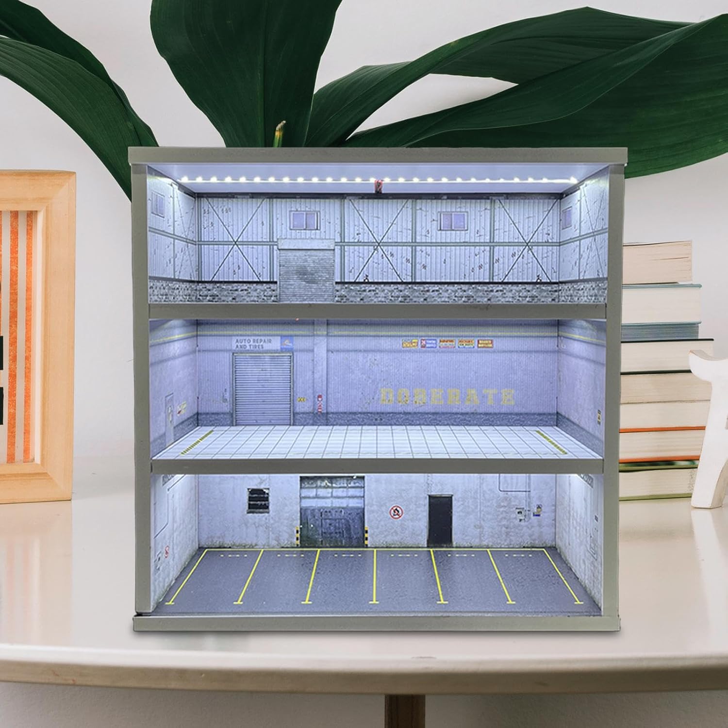 harayaa Vetrina per Modellini di Auto Diorama Garage Scatola Espositiva Parcheggio Contenitore a Tre Livelli con Coperchio Antipolvere Adatto per Collezionist, Style B