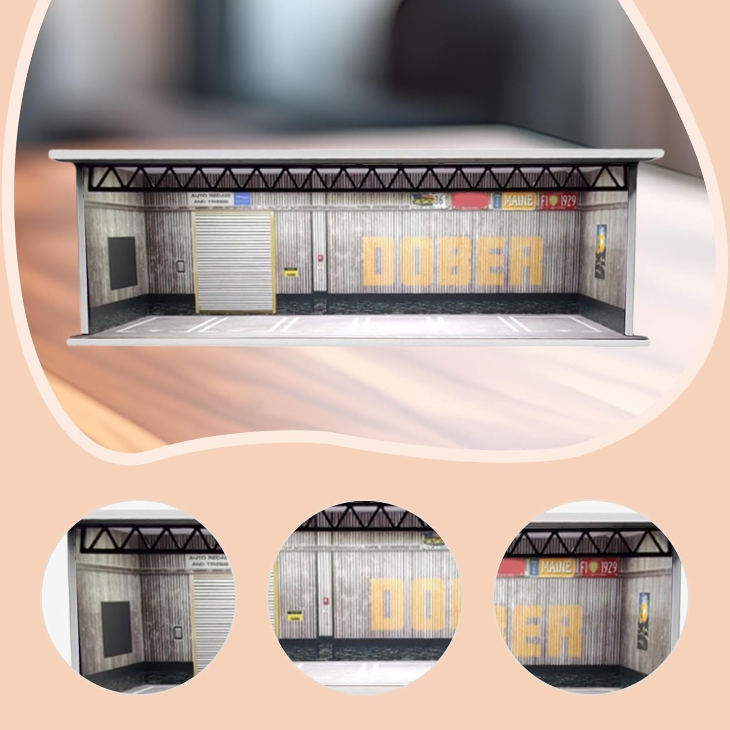 harayaa Vetrina per Modellini di Auto Diorama Garage Scena Parcheggio Espositore per Collezionisti con Luce a LED Integrata Adatto per 1/64 E Regali, Style H