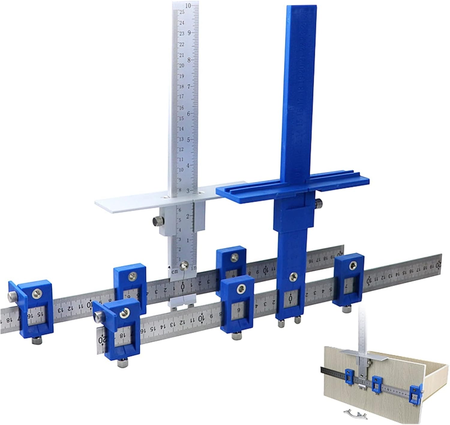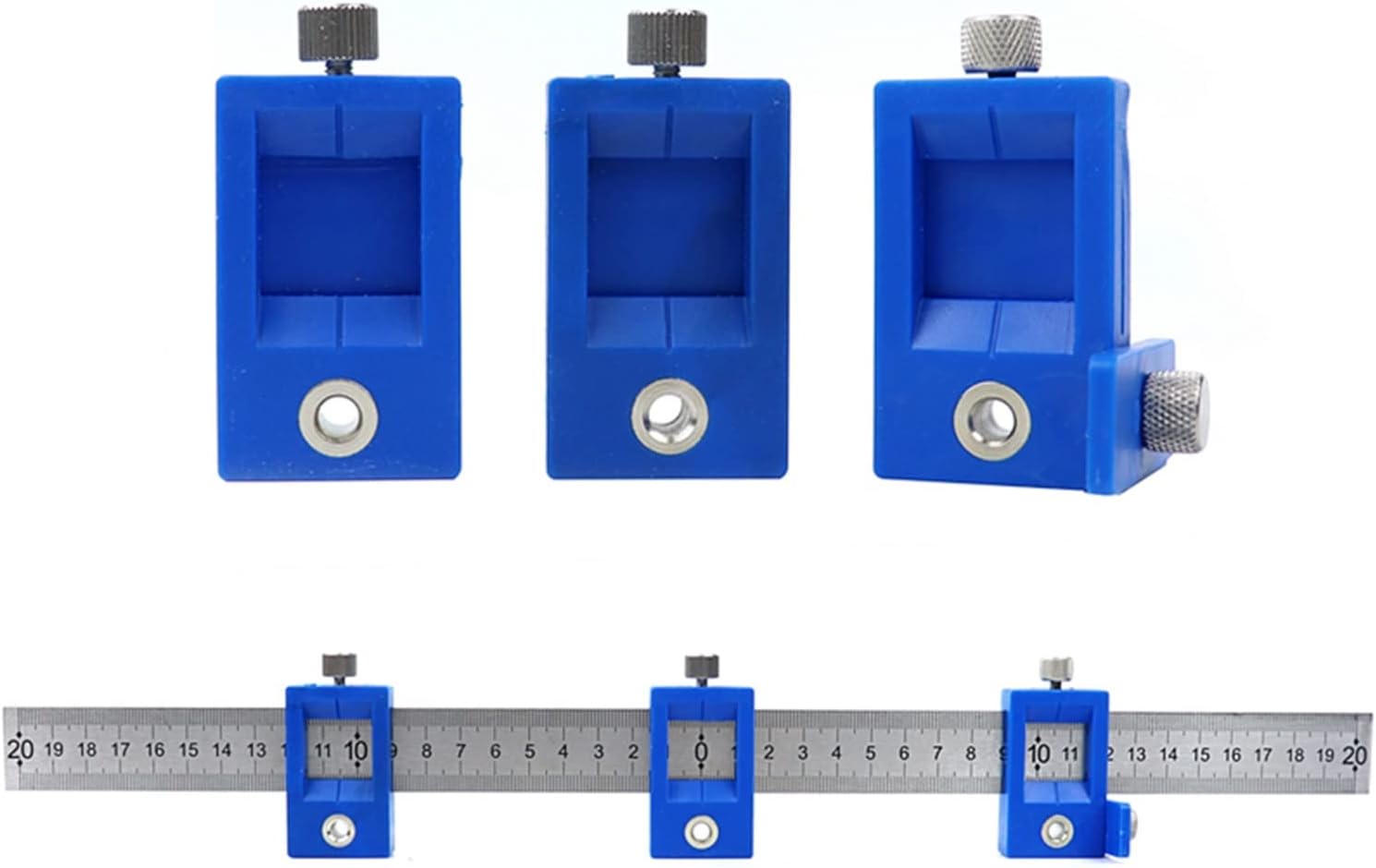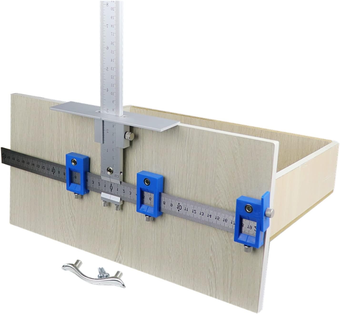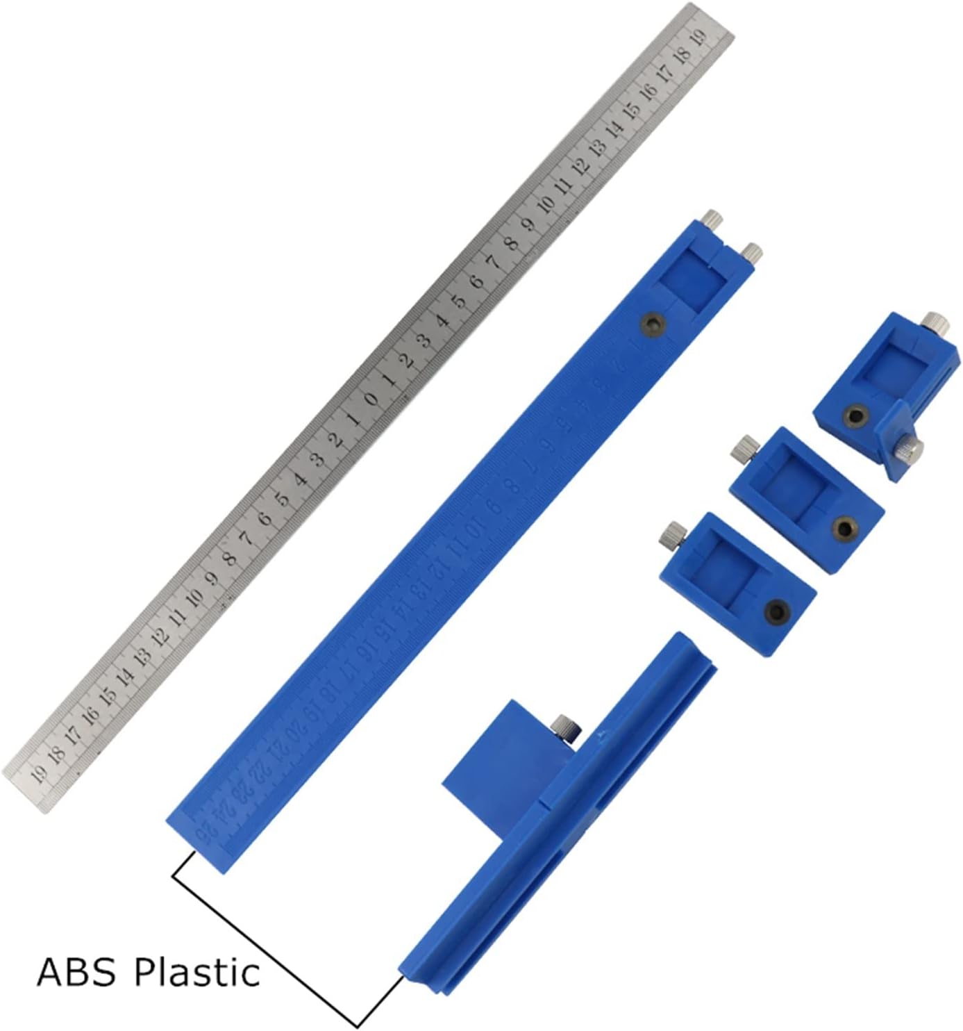 La maniglia di serraggio montata frontalmente facilita il serraggio. Il blocco di regolazione del collare di arresto semplifica l'impostazione della punta. Nuovo, migliorato e conveniente. Configuralo una volta e usalo ripetutamente senza ulteriori azioni. Questa maschera consente di misurare le posizioni perfette dei fori per le maniglie, le maniglie e le manopole dell'armadio. Regolazioni facili e veloci Una maschera versatile per l'installazione precisa di maniglie/pomelli su cassetti e ante, la staffa a L e le viti superiori lo mantengono orizzontale e le due grandi viti a testa zigrinata anteriori si bloccano in posizione verticale. Durata superiore Realizzato con acciaio inossidabile e alluminio, abbastanza resistente anche da poterlo utilizzare migliaia di volte.