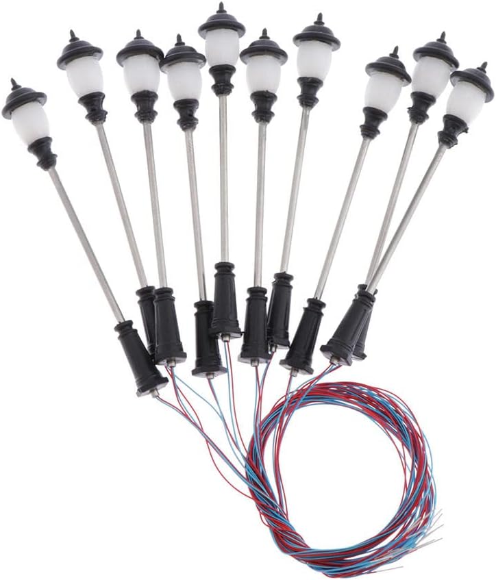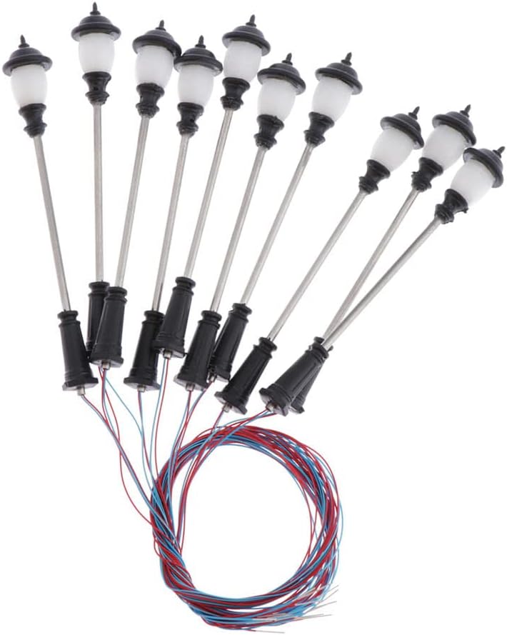 Decroazione per Diorama paesaggistico in scala HO. 10 pezzi 1: 100 modellismo ferroviario LED lanterne lampioni lampioni scala HO 12 LED per esterni. per il layout ferroviario ed edilizio. Materiale: plastica + lega. Colore: bianco