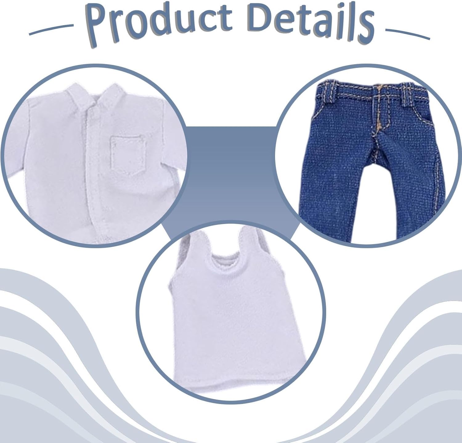 【Diverse combinazioni】: abiti casual da uomo possono essere abbinati ad altri accessori, aumentando la giocabilità della bambola e soddisfacendo diverse esigenze. 【Dettagli realistici dei jeans】: l'abbigliamento maschile presenta jeans con dettagli delicati come pieghe , che aggiungono realismo e migliorano l'effetto visivo. 【Tessuto di 】: i vestiti per bambole maschili in miniatura in 1/12 sono realizzati in tessuto di , morbido, robusto e con colori stabili. 【Dettagli eccellenti】: i vestiti per figure maschili in 1/12 sono progettati specificamente per bambole maschili in 1/12. Grazie alla vestibilità e alle dimensioni perfette, si adattano alle bambole in modo appropriato e realistico. 【Design casual ed elegante】: i vestiti da uomo in 1:12 sono caratterizzati da una canottiera abbinata a jeans, offrendo un look casual ed elegante per le bambole maschili in vari scenari espositivi.