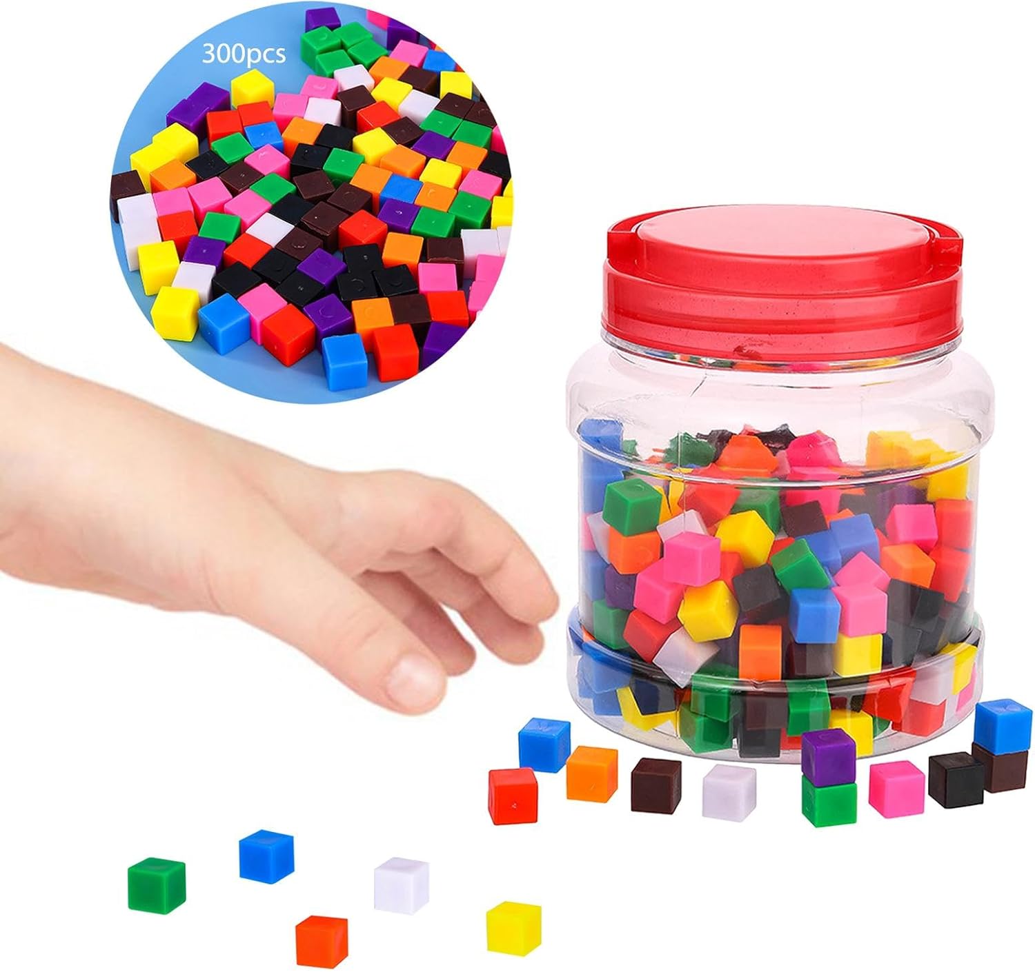 【Miscela di 10 colori brillanti】: include rosso brillante, giallo, verde, , rosa, bianco, arancione, viola, nero per una facile identificazione dei colori e un gioco coinvolgente 【Migliora le capacità motorie fini】: i cubi centimetrici aiutano i bambini a esercitarsi ad afferrare, impilare e riconoscere colori e forme confrontando dimensioni e quantità 【Gioco creativo ed educativo】: Math Cubes incoraggia la costruzione fantasiosa, la consapevolezza spaziale e concetti matematici come addizione e sottrazione 【Materiale】: i conteggio sono realizzati in PP di qualità con bordi lisci (10x10x10 mm per blocco), per le manine dei più piccoli 【Colori vivaci e coinvolgenti】: i cubi dai colori vivaci rendono l'apprendimento divertente migliorando il riconoscimento dei colori e la percezione visiva