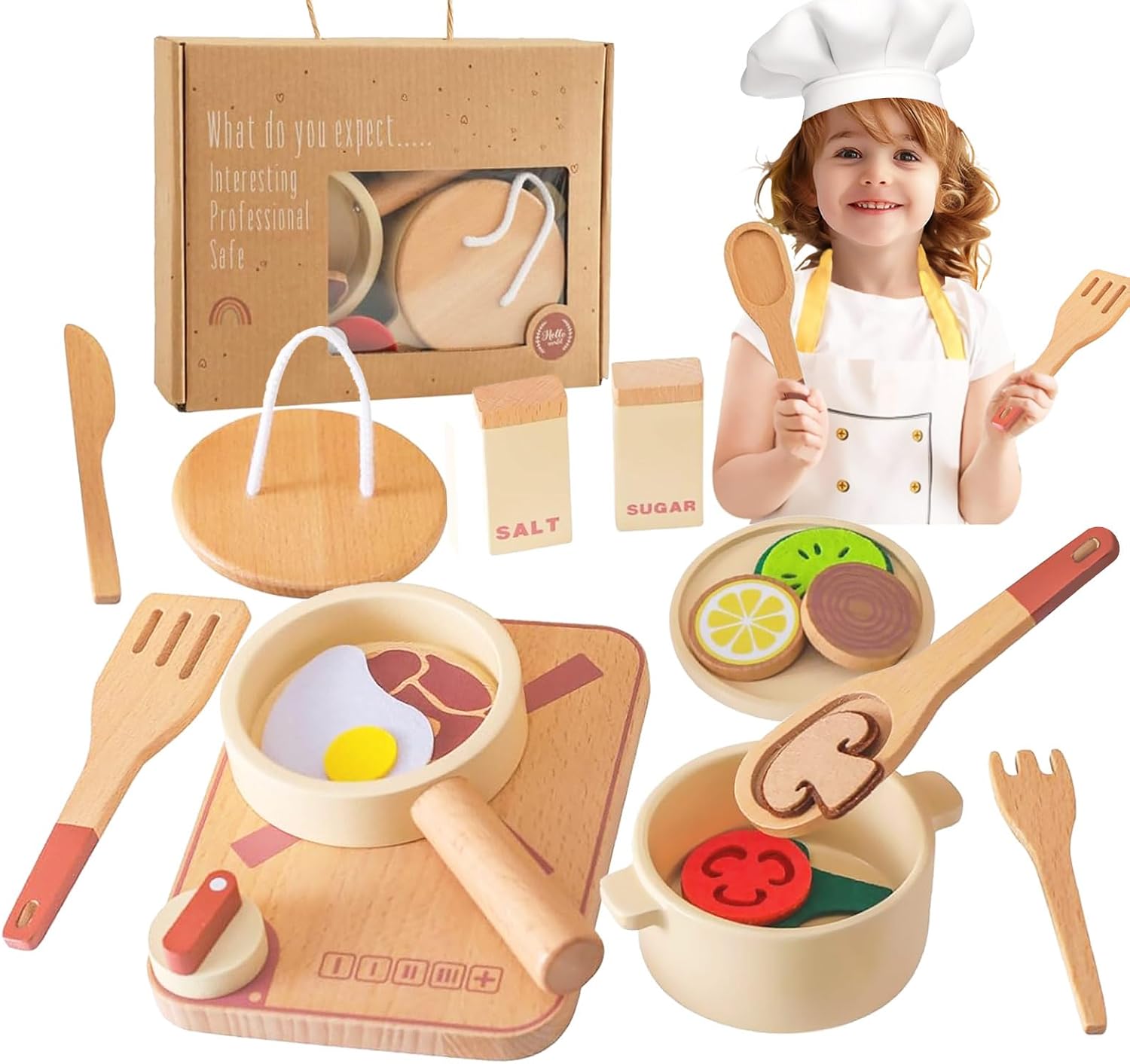 【Gioco di ruolo】: Playset di gioco di finzione, i bambini possono migliorare le loro capacità di vita, abilità sociali e immaginazione attraverso il gioco di ruolo come cameriere 【Gioco di abbinamento dei colori】: il set da gioco per il tè pomeridiano è caratterizzato da colori diversi, che stimolano l'interesse dei bambini per la cognizione dei colori e consentono loro di vivere felicemente l'ora del tè pomeridiano. 【Giocattolo simulato per il tè pomeridiano】: set di piatti in legno, il set include piatti, piattini, tazze, forchette, coltelli, modello di bottiglie di condimento 【Materiale】: i piatti e i piatti giocattolo in legno per la cucina sono realizzati in materiale di legno, robusti e ottimi per giocare 【Un regalo fantastico】: il set da tè da cucina per bambini è un regalo perfetto per bambine, bambine e figlie. Ideale per compleanni, feste e bomboniere.