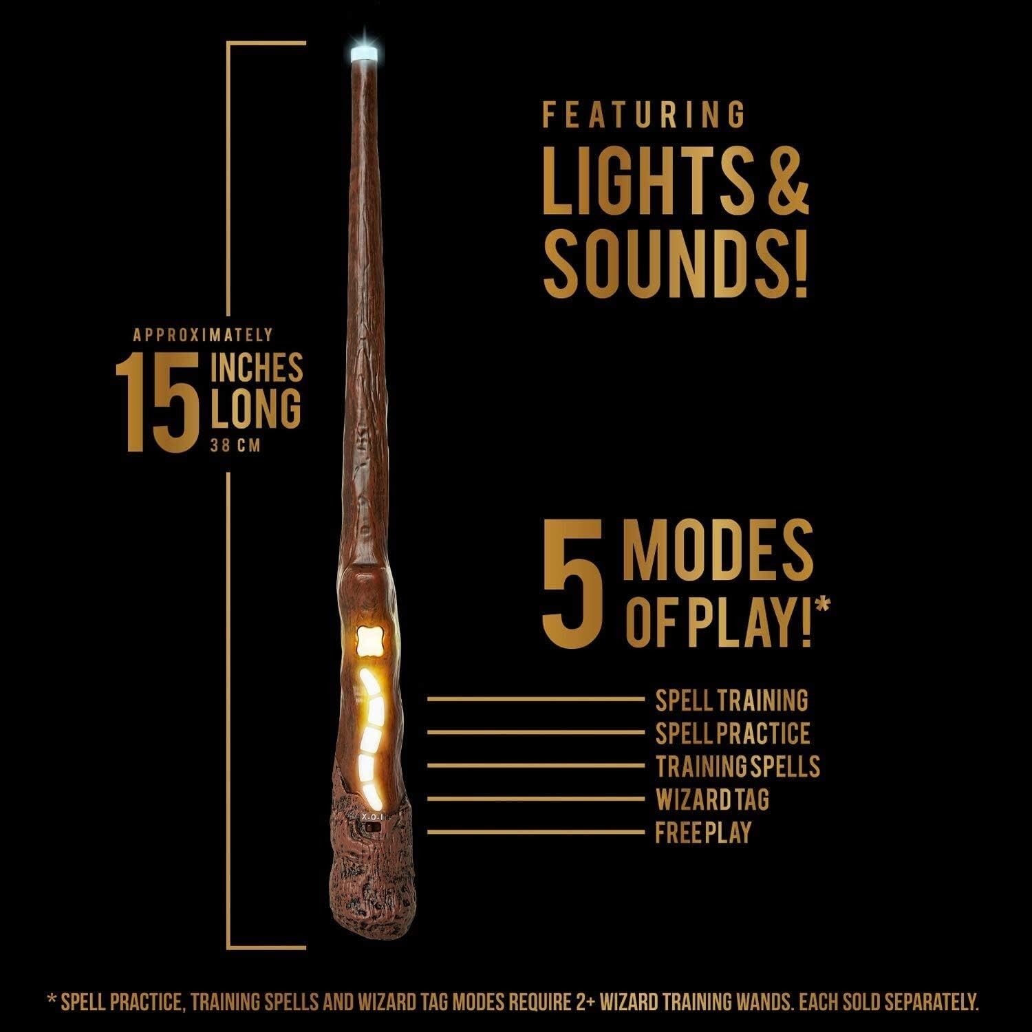 Preparati all'addestramento da mago con i migliori regali di Harry Potter per bambini Allenati come un mago con le nostre pluripremiate bacchette da addestramento del mago di Harry Potter per bambini o per qualsiasi fan di Harry Potter 11 diversi incantesimi che i bambini possono imparare e padroneggiare utilizzando la guida all'addestramento degli incantesimi inclusa per ore di divertimento magico e fantasioso: è anche l'accessorio perfetto di Harry Potter per il tuo costume di Harry Potter Riconosce il movimento per sapere quando hai lanciato l'incantesimo e fornisce un feedback acustico che indica che l'incantesimo è stato lanciato correttamente - 3 batterie AAA incluse 5 modalità di gioco: due modalità di gioco indipendenti e tre modalità per giocare con un amico che ha anche una bacchetta da addestramento del mago - Le bacchette interagiscono tra loro così puoi giocare con due o più amici - Il pulsante luminoso ti consente di selezionare la modalità di gioco Giocattolo pluripremiato - Vincitore del National Parental Product Awards 2018, giocattolo Insider Hot 20, prodotto ufficiale di Harry Potter Colleziona tutte e 4 le bacchette da addestramento del mago Lunghezza circa 16 pollici (40 cm). Scegli tra la bacchetta magica di Harry Potter, la bacchetta magica di Albus Silente (la bacchetta di sambuco), la bacchetta magica di Lord Voldemort e la bacchetta magica di Ron Weasley. Venduto separatamente