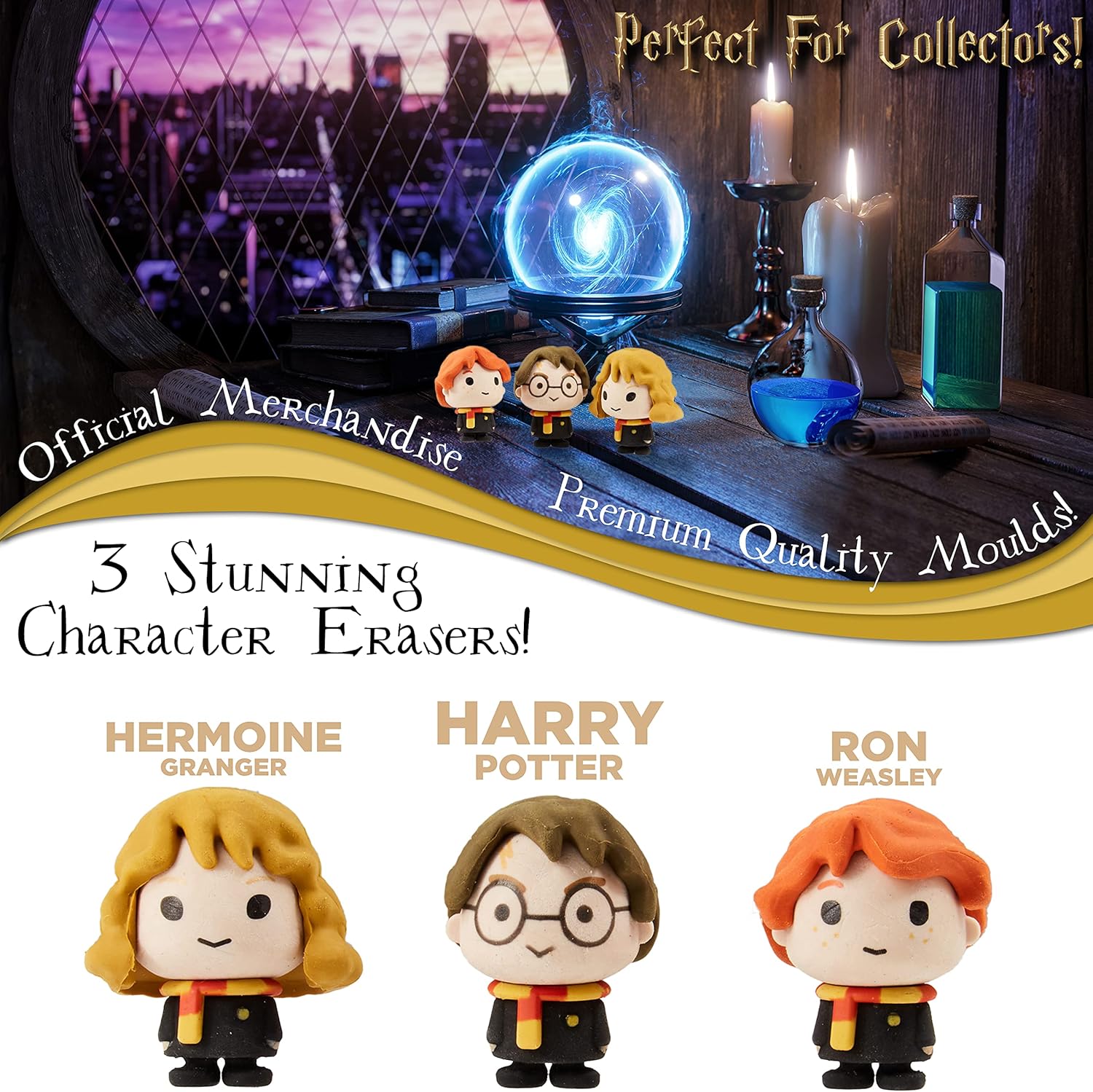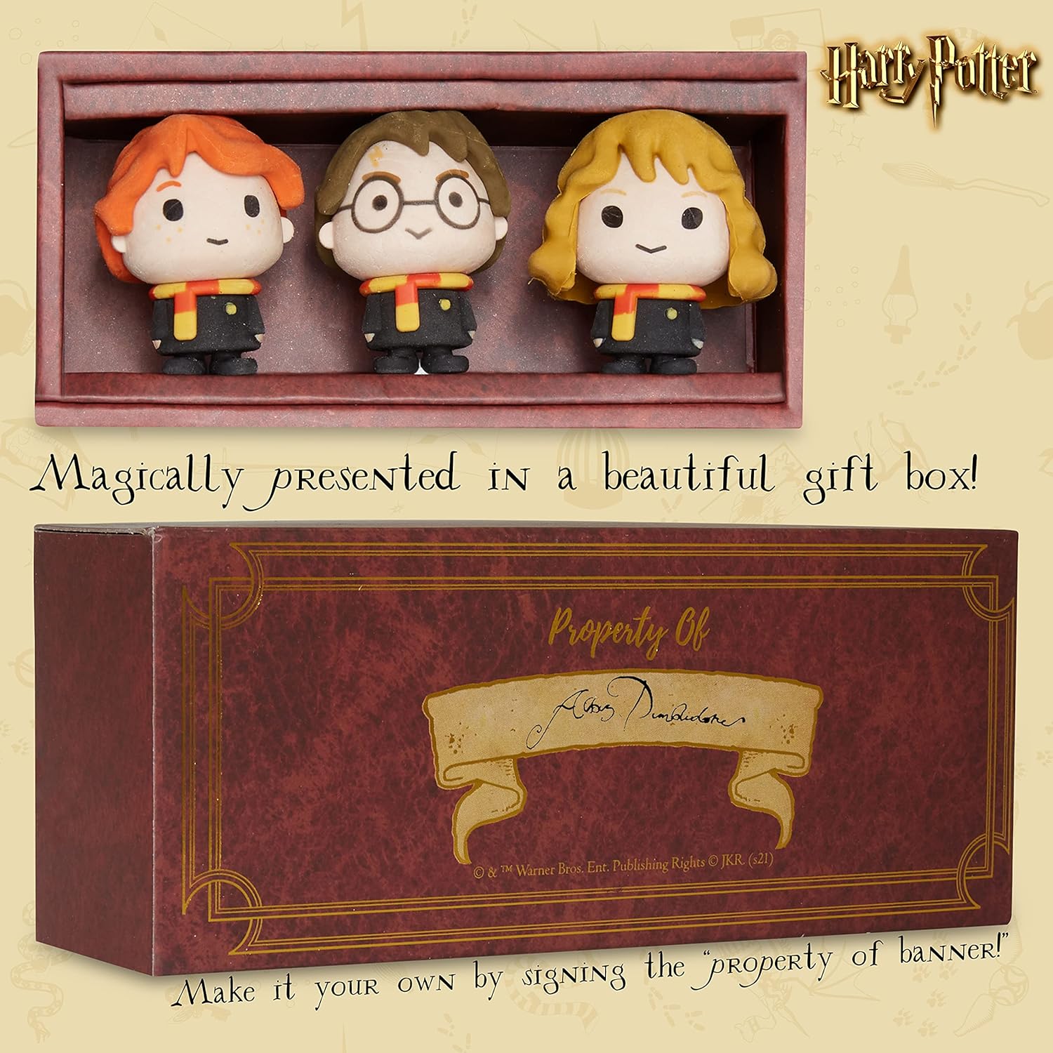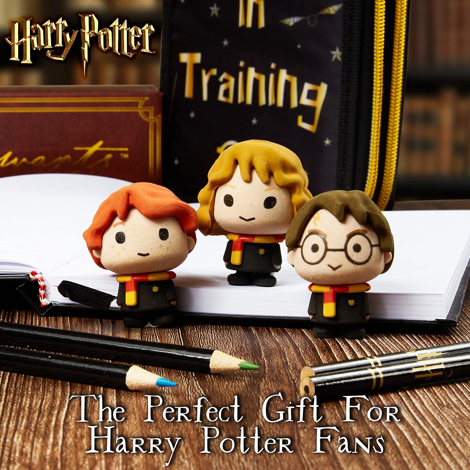 GOMME DA COLLEZIONE HARRY POTTER -- include 3 mini figure di Harry Potter: Harry, Ron e Hermione stile Chibi. Queste gomme da cancellare per bambini sono ottime come gomme da cancellare divertenti per il ritorno a scuola o come figurine Harry Potter da collezione. CONFEZIONE DA 3 PERSONAGGI DI GOMMA -- set di 3 personaggi con Harry, Hermione Granger e Ron Weasley. Minifigure 3D Chibi 4,5 cm circa. REGALI DI HARRY POTTER -- stai cercando il regalo perfetto per un fan di Harry Potter? Questo cofanetto di gomme da cancellare bambini è un'idea regalo originale per tutte le occasioni: compleanno, Natale, ritorno a scuola o come oggetti da collezione e gadget Harry Potter originali per fan di tutte le età EDIZIONE LIMITATA -- queste gomme Harry Potter per bambini sono disponibili solo in edizione limitata e non possiamo garantire il rifornimento con lo stesso set di minifigure. Da non perdere per i collezionisti di cancelleria harry potter HARRY POTTER MERCHANDISE UFFICIALE -- tutti gli oggetti e figurine Harry Potter inclusi nel set fanno parte della collezione ufficiale di merch Wizarding World con licenza ufficiale Warner Bros Entertainment studios