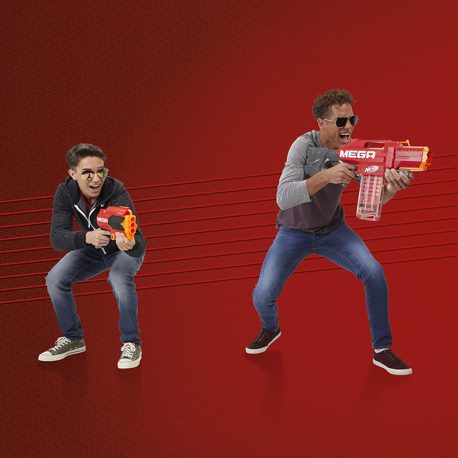 Motorizzato 10 art blaster: il motore è acceso e 10 freccette Nerf Mega possono essere sparate con il blaster motorizzato Nerf Mega Motostryke con caricatore a clip Molto potente e molto grande: questo grande blaster multidardo motorizzato Nerf Mega ha la giusta dimensione e potenza per sentire gli altri giocatori 10 Nerf Mega Darts e 10 Dart Clip Magazine: viene fornito con un caricatore rimovibile a 10 freccette e 10 grandi freccette Nerf Mega che fanno un fischio quando vola in aria Alta qualità