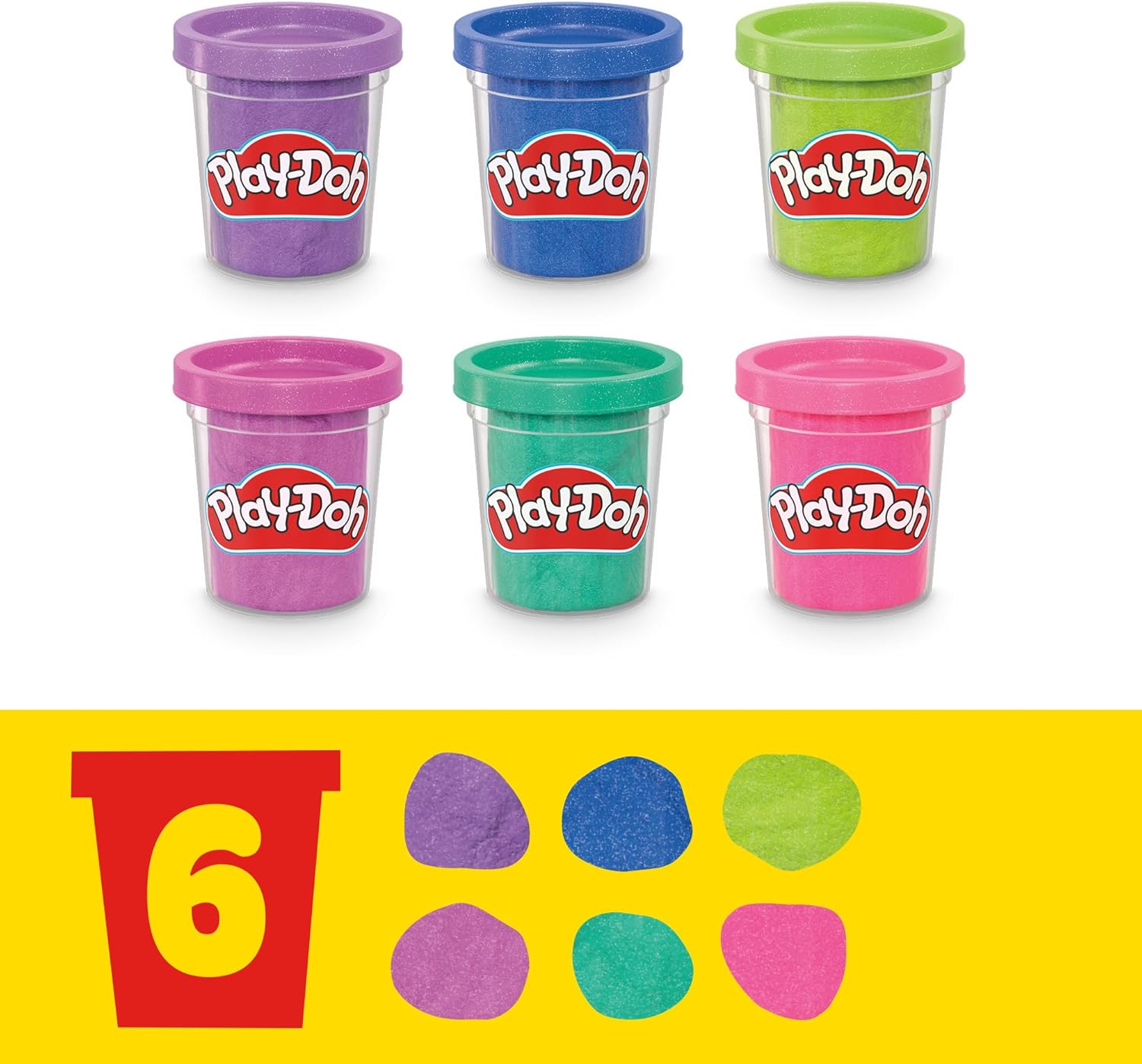 SET DI PLASTILINA CREATIVA CON 6 COLORI METALLICI: i vivaci toni gioiello di rosa, lilla, viola, verde, verde lime e blu della pasta modellabile brillante Play-Doh possono far brillare le idee creative dei bimbi come gemme ARTICOLO PER CREAZIONI IN PLASTILINA REALIZZATO CON MICA: la mica è un minerale presente in natura che conferisce alla pasta da modellare la sua brillantezza. La pasta è dunque sicura e adatta a bambini e bambine dai 2 ani in su SET CON 6 VASETTI CONDIVISIBILI DA 56 GRAMMI: i vasetti da 56 grammi sono della dimensione ideale per essere condivisi con amici e amiche per ore di gioco all'insegna del divertimento e della creatività QUALITÀ AFFIDABILE: sottoposta a rigorosi test di qualità, la pasta da modellare Play-Doh è composta principalmente da acqua, sale e farina. La scelta ideale per bambini e bambine in età prescolare che amano modellare, scolpire e creare