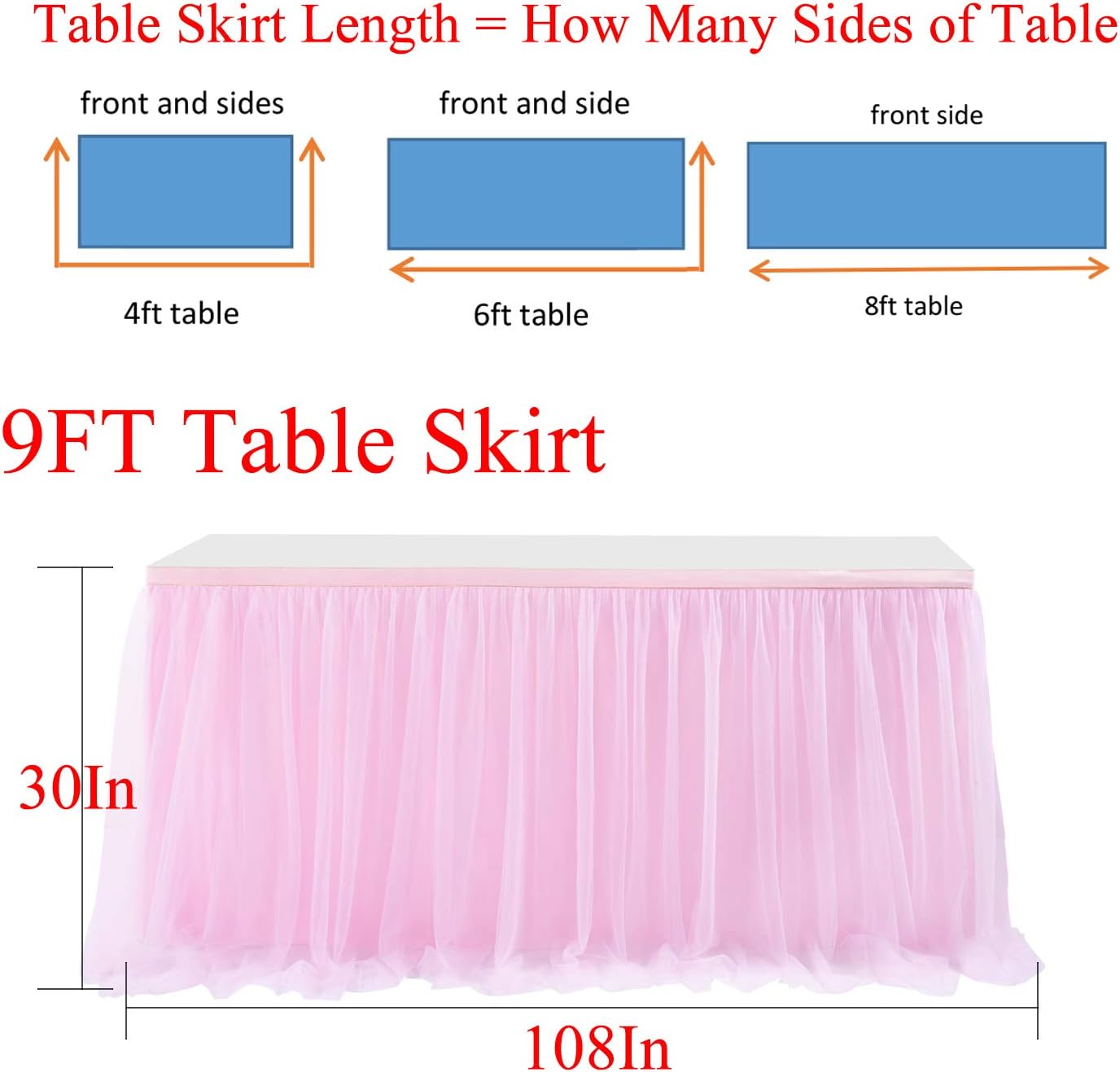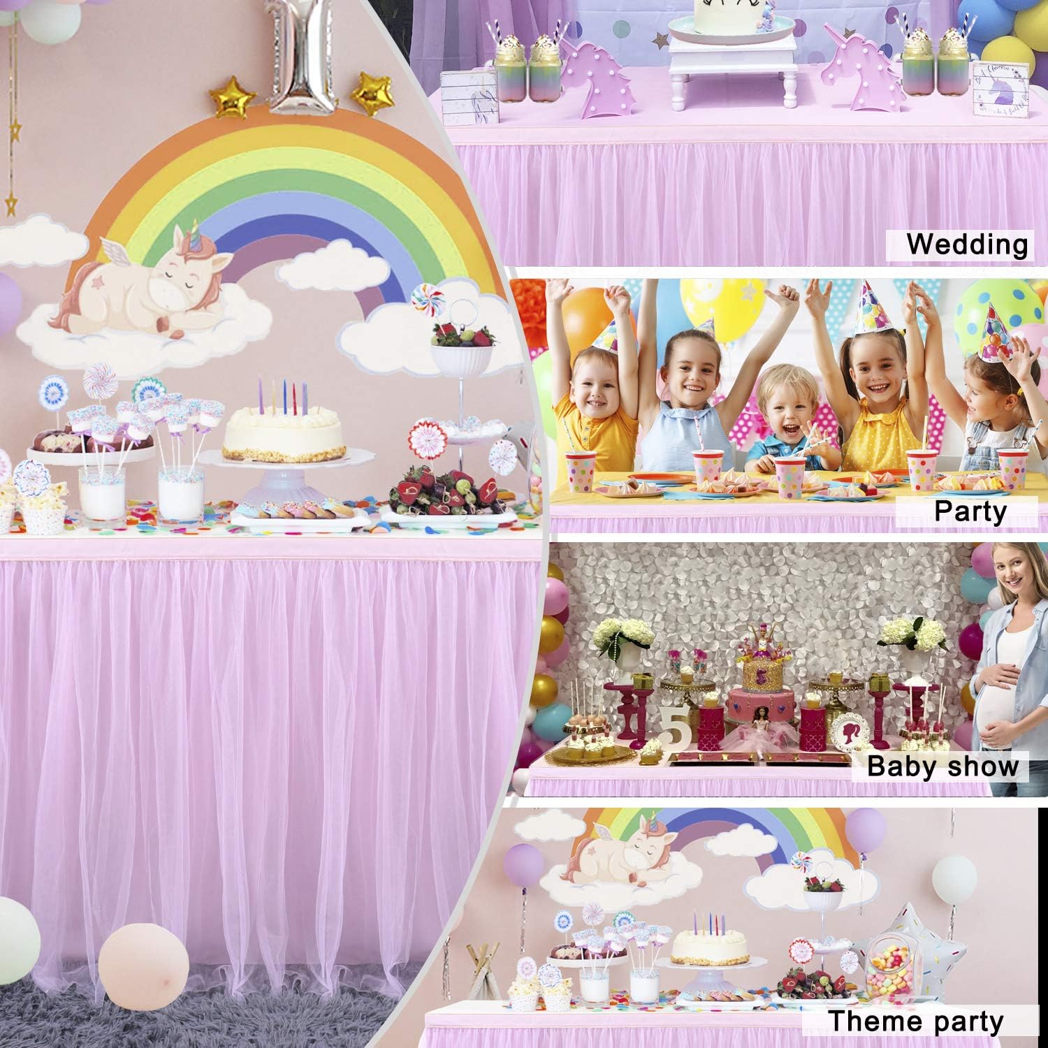 💙 Materiale antirughe e lavabile Tavolo in tulle rosa: la gonna da tavolo per bambini è realizzata in tulle di alta qualità, morbido e senza pieghe. La parte superiore è rifinita con un bordo dorato lucido, che la rende classica, elegante e alla moda. 💙Dimensioni della gonna da tavolo: 183 cm x 76 cm (L x A 30 pollici, 6 piedi) Questa dimensione si riferisce alla lunghezza della gonna da tavolo, non ai tavoli, ma copre solo la parte anteriore di un tavolo rettangolare da 6 piedi. Si prega di misurare le dimensioni del tavolo, controllare le dimensioni prima di effettuare un ordine per evitare problemi inutili. Scegli la dimensione e il numero di acquisti. 💙Installazione semplice: il tavolo per caramelle arricciato è dotato di una chiusura in velcro. Consente un'installazione facile e veloce. Se hai bisogno di una gonna da tavolo più lunga, puoi acquistare più di uno o più pezzi e collegare semplicemente l'estremità del nastro per completarla. Ti consigliamo di acquistare la misura che copre il tuo tavolo sulla parte anteriore e su entrambi i lati. 💙ADATTA A TUTTE LE OCCASIONI: Il design unico della gonna da tavolo può essere utilizzato per qualsiasi tavolo o server da buffet ed è una scelta specifica per l'arredamento della tua casa, matrimonio, decorazione di compleanno della ragazza, baby shower, candy party, candy bar. La tovaglia in tulle è la scelta perfetta per aggiungere ulteriore eleganza al tuo matrimonio o festa. Contenuto della confezione: 1 gonna da tavolo in tulle rosa + abbastanza chiusura in velcro + garanzia di rimborso al 100%. Se per qualsiasi motivo non ti piace la nostra colorata gonna da tavolo entro 30 giorni, non esitare a contattarci. Emetteremo un rimborso completo o una sostituzione entro 12 ore senza fare domande.