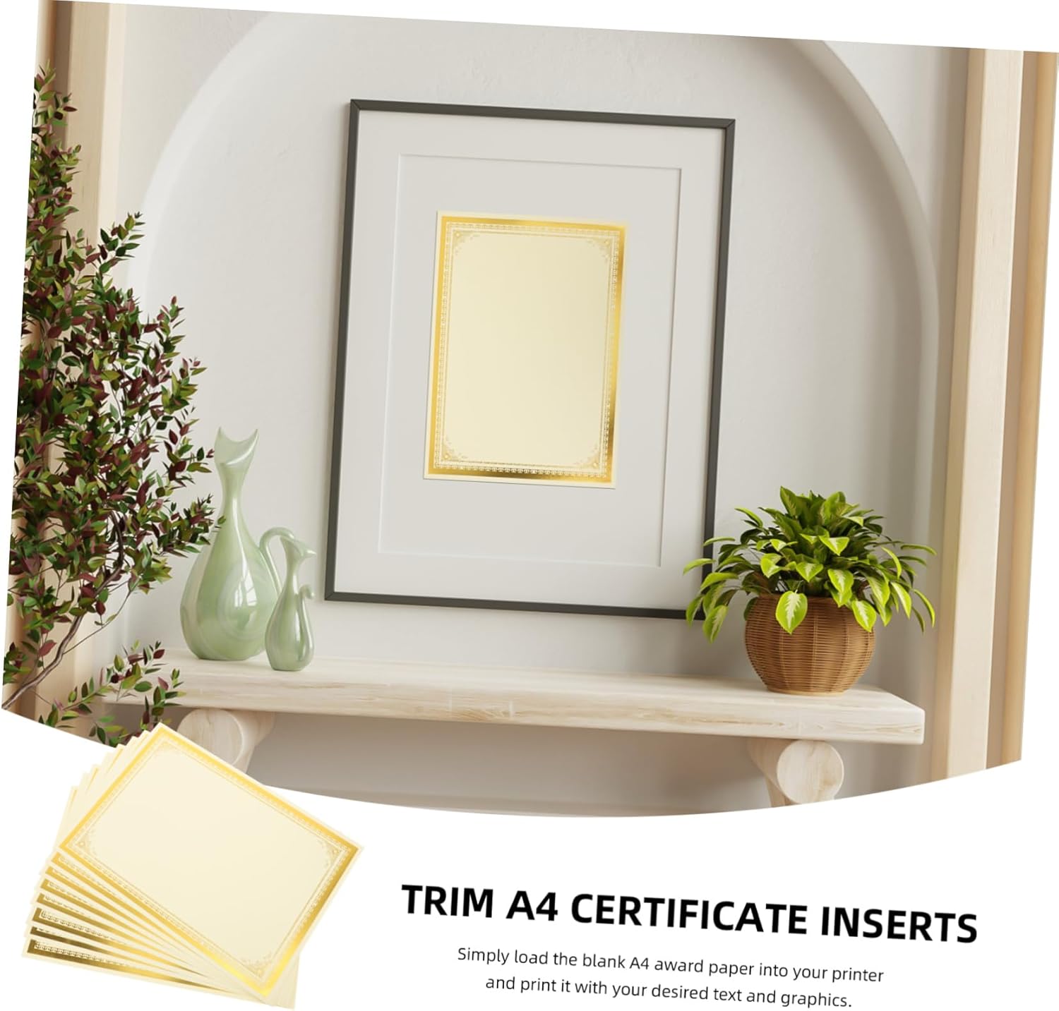 Bordo dorato: il bordo dorato su questa carta a4 trasuda , facendo risaltare i tuoi certificati con un aspetto, fogli di certificati vuoti, carta per premi a4 vuota Adatto alla stampa: progettato per funzionare senza problemi con le stampanti domestiche e da ufficio per una stampa semplice, certificato a4 pesante, carta per premi Spessore: lo spessore del nucleo vuoto assicura che i certificati stampati abbiano un aspetto lucido,carta per certificati per la stampa,carta per certificati vuota Con finiture dorate: caratterizzato da una lussuosa finitura dorata, questo certificato in formato a4 aggiunge un tocco di raffinatezza e professionalità a qualsiasi premio o diploma, carta per diplomi con bordo dorato, fogli di certificati stampabili Durata prolungata: questa carta pesante è progettata per durare a lungo, assicurando che i tuoi certificati rimangano incontaminati e resistenti allo sbiadimento, certificato vuoto a4, carta per diploma vuota