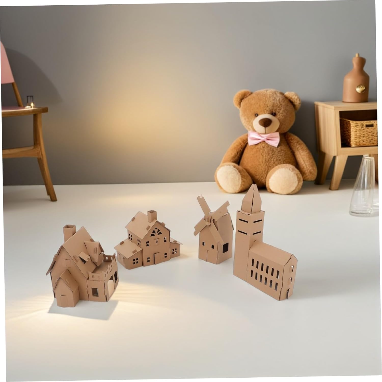Divertimento con la pittura: con la casetta da pittura in cartone puoi personalizzare la tua casetta con colori vivaci e migliorare le tue capacità artistiche e il riconoscimento dei colori. Costruisci il tuo villaggio, kit per case di cartone Sviluppa abilità: realizzare case di cartone fai-da-te aiuta a migliorare la coordinazione occhio-mano dei bambini, le capacità di risoluzione dei problemi e l'attenzione ai dettagli. Casa delle bambole in cartone, mini case in cartone Sicuro: questo kit artigianale per case in cartone è realizzato con materiali riciclabili ed è sicuro per l'uso e l'esplorazione. Kit modello mini casa, modello di carta fai-da-te per esplorazione creativa: incoraggiati a dare libero sfogo alla tua immaginazione con questo kit casa di carta fai-da-te. è perfetto per creare design unici e incoraggiare la creatività. Modello di mini casa in carta, kit di apprendimento interattivo per mini casa: questo kit modello in cartone combina divertimento ed educazione, rendendolo un ottimo strumento per insegnare consapevolezza spaziale e concetti di design, mini case di cartone, kit modello fai-da-te per