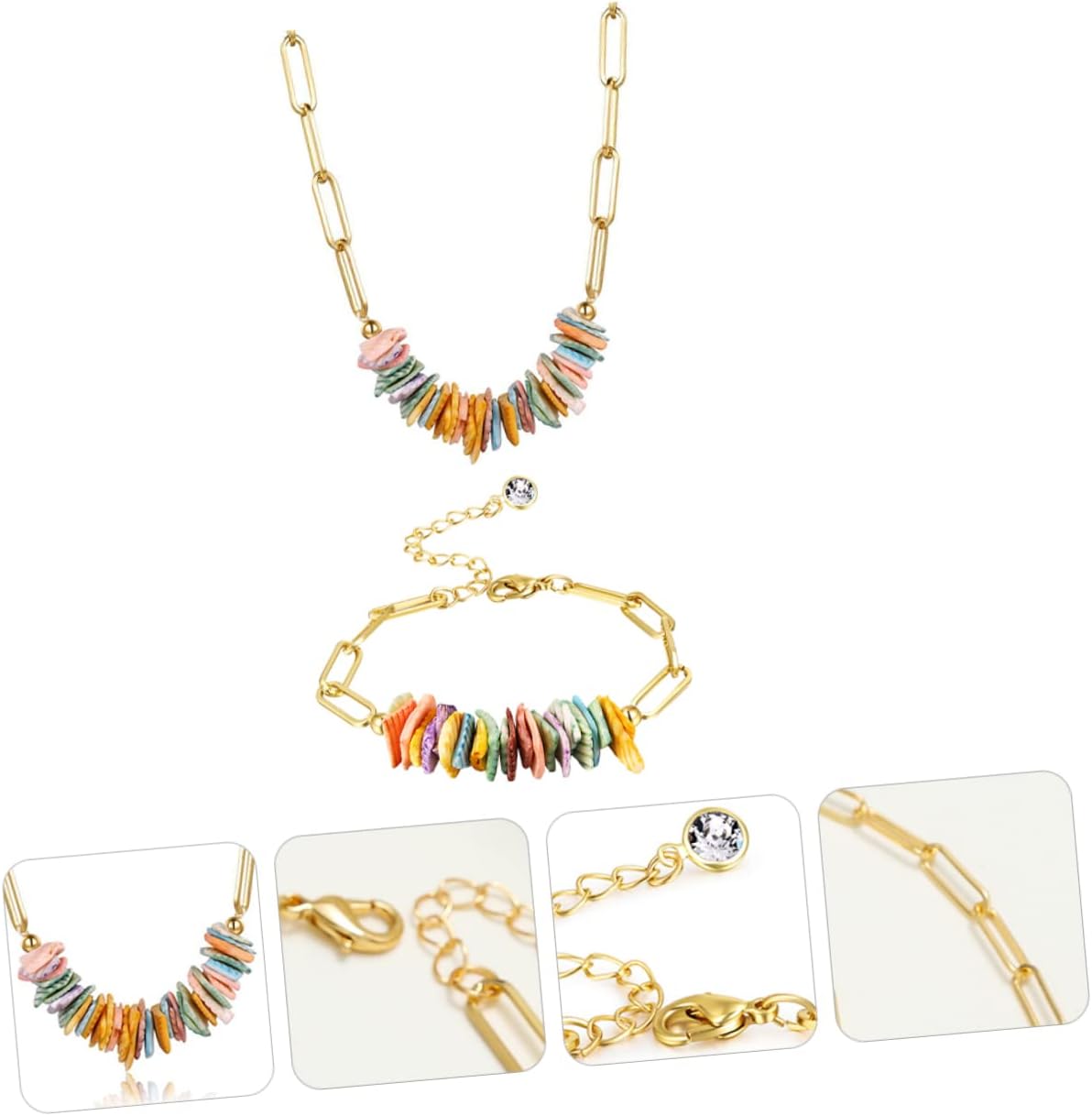 dei pacchetti 1 x collana 1 x Caratteristiche -Dimensioni: 50,00X1,00X1,00 cm/19,65X0,39X0,39 pollici Decorazioni a -Materiale: capesante frantumate, decorazioni natalizie in rame -Colore: Multi Vintage coordinati al -Lunghezza del : 22 cm/8,7 pollici Bracciale in festivo - con , è resistente e pratico, può a lungo e puoi usarlo con facilità come in country. - con capesante colorate e creative, sembrano brillanti e speciali, conquisterete la e gli con i vostri estivi. - con 2 accessori, tra cui 1 collana e 1 , per un look e o uno vacanziero e country con la collana e in vacanziero per vestirti i giorni. -Questo set decorazioni è un o per un , San , della o Natale: collana . - Con esclusive smerigliate la collana e , squisita per un godimento visivo, puoi abbinarli al outfit con gli accessori per clavicola in country. Descrizione della merce Collana e bracciale con capesante Realizzati in rame e capesante frantumate, questo set collana e bracciale è indossare in . Decorazione della clavicola prodotto ti viene offerto in . in country L' arrivando, stai cercando decorazione speciale e abbinare al outfit per la e