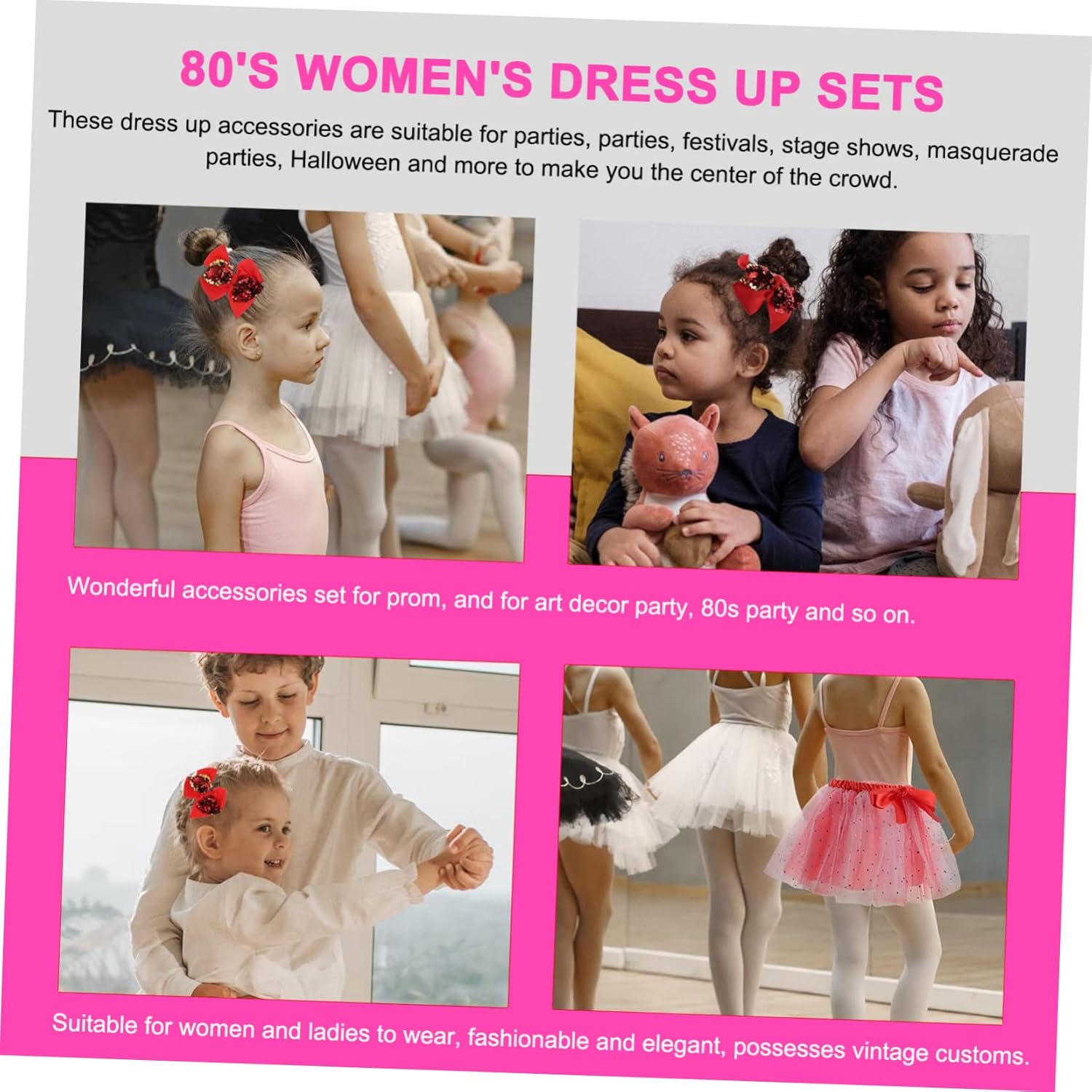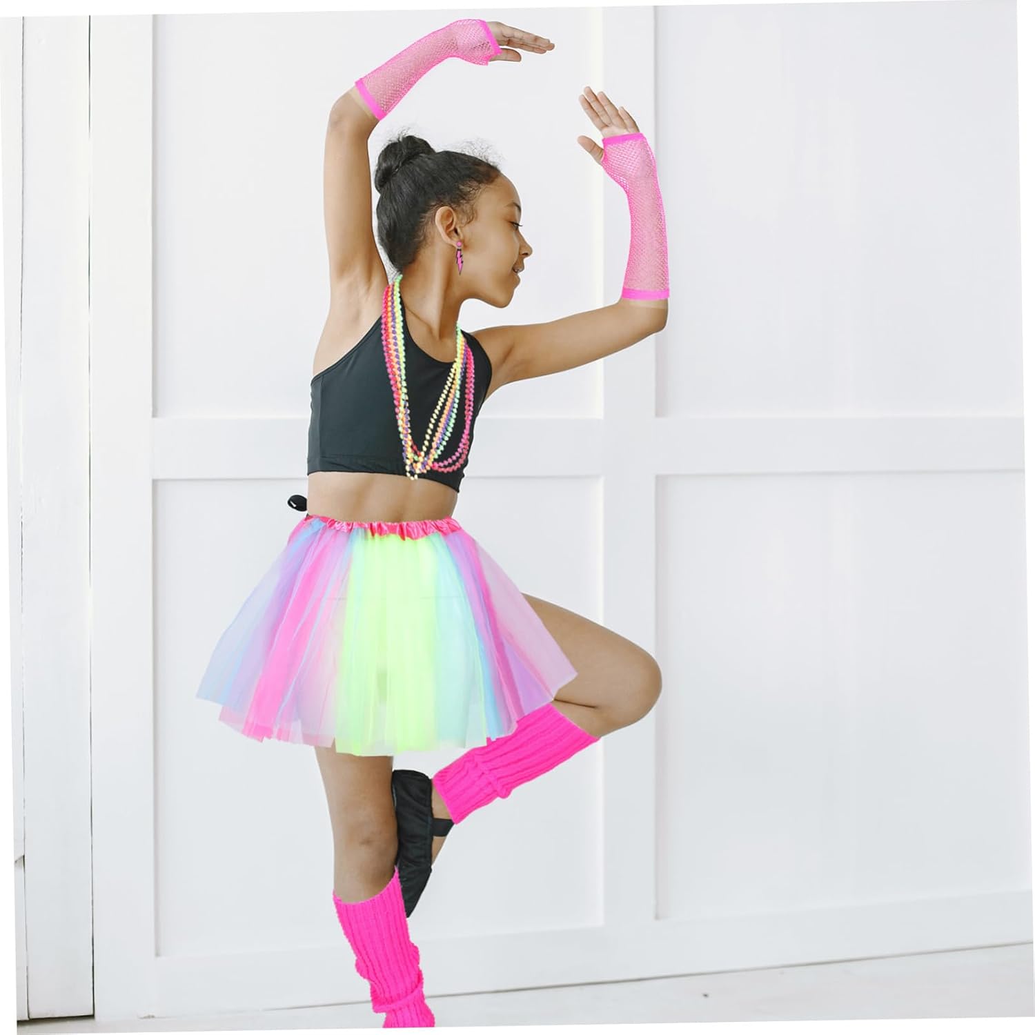 dei pacchetti 1 paio di guanti, 1 paio di scaldamuscoli, 1 paio di orecchini, 6 collane, 1 vestito Caratteristiche - Dimensioni: 45,00X40,00X1,00cm/ 17,68X15,72X0,39 pollici accessori da discoteca. - Materiale: accessori per feste in discoteca in poliestere. - Set di accessori perfetti per le donne per balli di fine anno, eventi e feste anni '80, decorazioni artistiche e accessori per costumi da festa flapper per donne. - Accessori per travestimenti da rocker assortiti - Questi accessori per costumi sono leggeri, puoi indossarli alle feste, sono perfetti come accessori da discoteca anni '80 per le donne. - Aspetto grazioso ed elegante, pregevole fattura, può essere utilizzato anche come per gli amici, accessori per feste al neon. - Ottimo set combinato adatto a donne e ragazze di varie età per mostrare la loro vitalità con l'abbigliamento da festa delle donne. - Materiali in poliestere, molto comodi e flessibili, puoi usarli come accessori per costumi da discoteca per lunghi periodi di tempo. Informazioni sulle merci Costumi da festa per donne Lo stile retrò ti renderà unica alla tua festa. Accessori Questi accessori per costumi sono realizzati in poliestere per un uso durevole e duraturo. Festa a tema in maschera Flessibile e comodo da indossare, questo kit di accessori per costumi si adatta alla maggior delle persone, i vivaci ti rendono più attraente alla festa degli anni '80