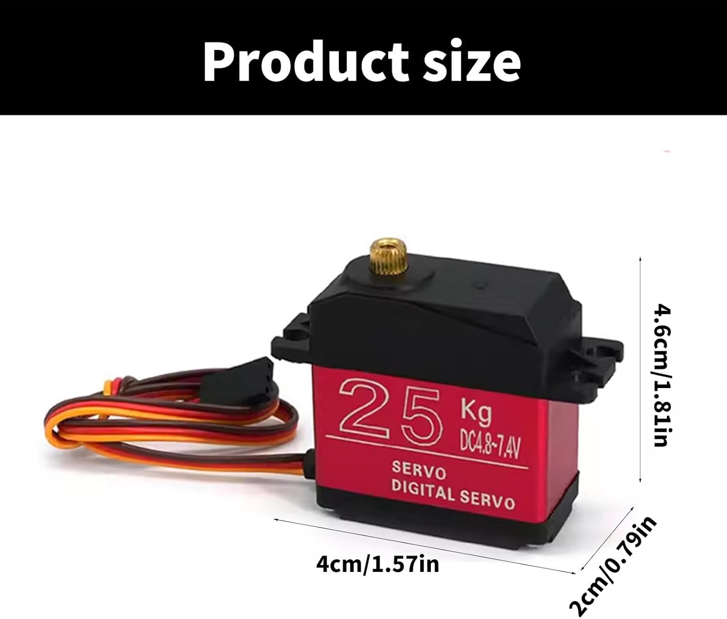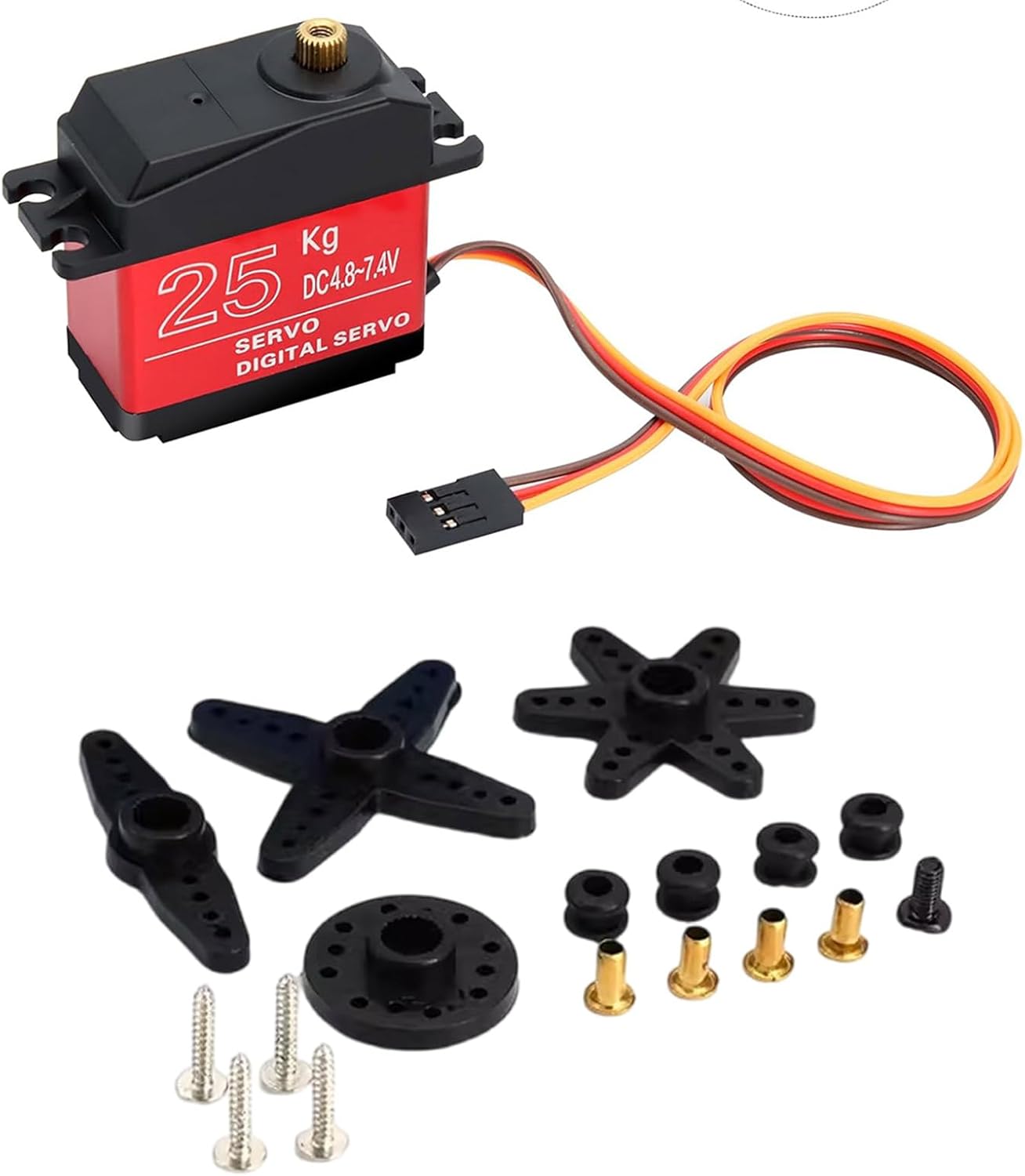 Aumenta la funzionalità del tuo progetto con un servomotore da 25 kg, dove il taglio dei bordi corrisponde all'affidabilità per garantire un funzionamento regolare anche negli ambienti più impegnativi Scatena il pieno potenziale dei tuoi modelli con il Servo Digitus da 25 kg con attrezzatura in metallo per una coppia e una durata senza precedenti Per gli appassionati di robotica, modellisti e hobbisti che richiedono coppie elevate per la loro creazione, dai droni ai bracci robotici Nell'applicazione di questo servomotore per l'uso in aerei, elicotteri, barche, veicoli e progetti per migliorare la precisione del movimento sulle piattaforme Questo servo digitale progettato per la precisione